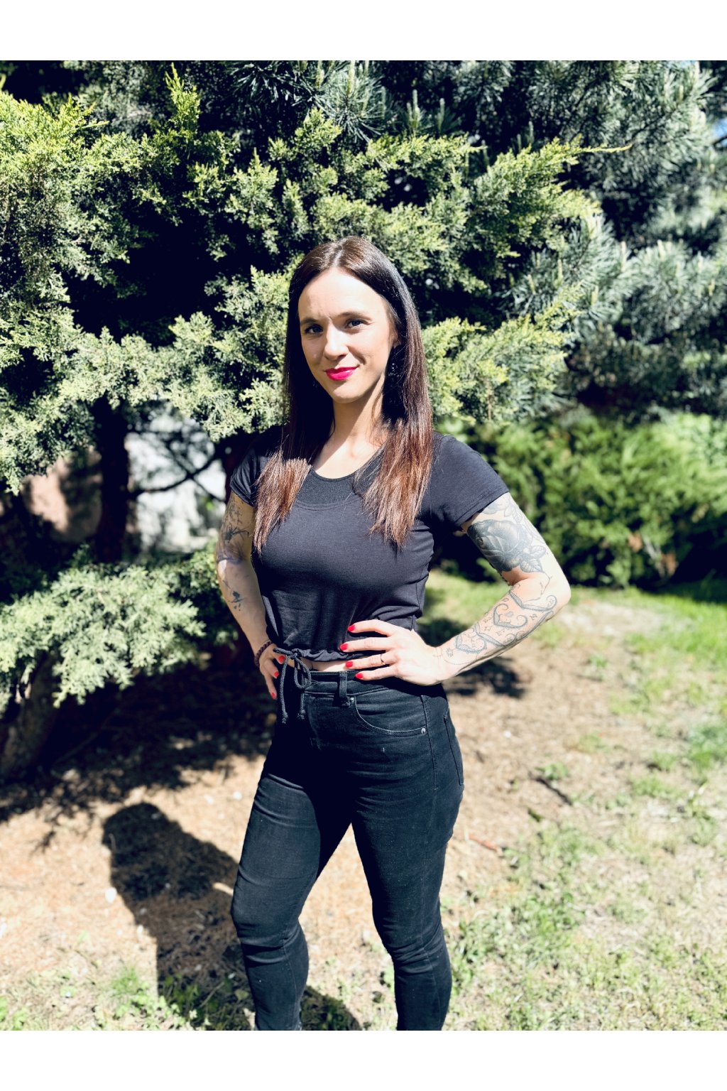 "KOMBINUJ" BLACK se šňůrkou KRÁTKÝ RUKÁV - Maminka (POUZE VRCHNÍ DÍL)