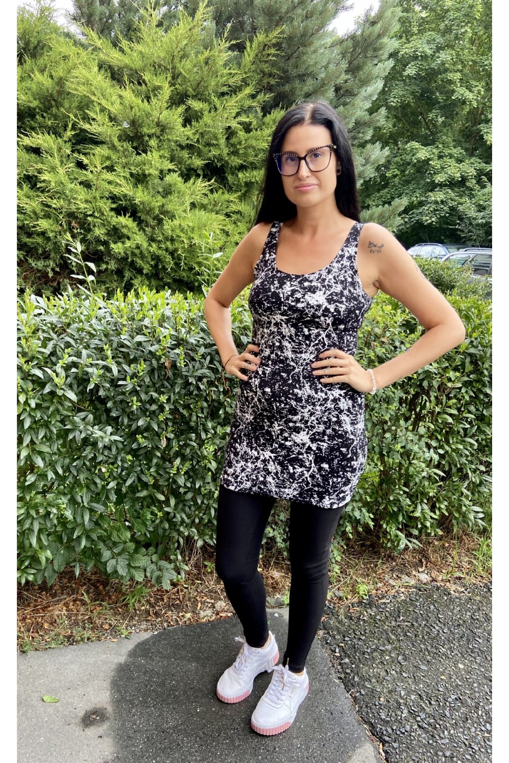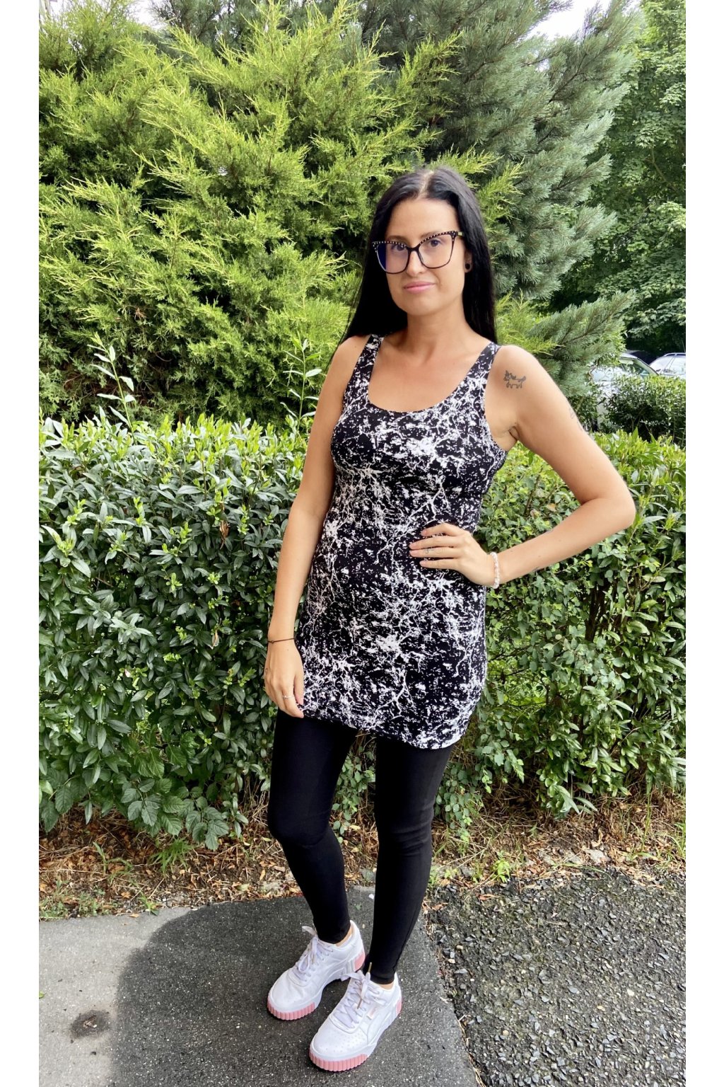 Klasické vyštíhlené a prodloužené tílko, které se hodí snad ke všemu. Materiál je slabší úplet bavlna/elastan.
