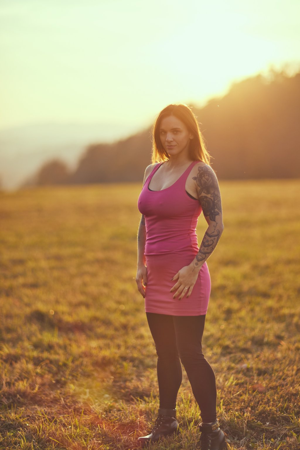 Tílko je upnuté, velikostně sedí akorát. Má hluboký výstřih, který se dá pohodlně stáhnout a nakojit.