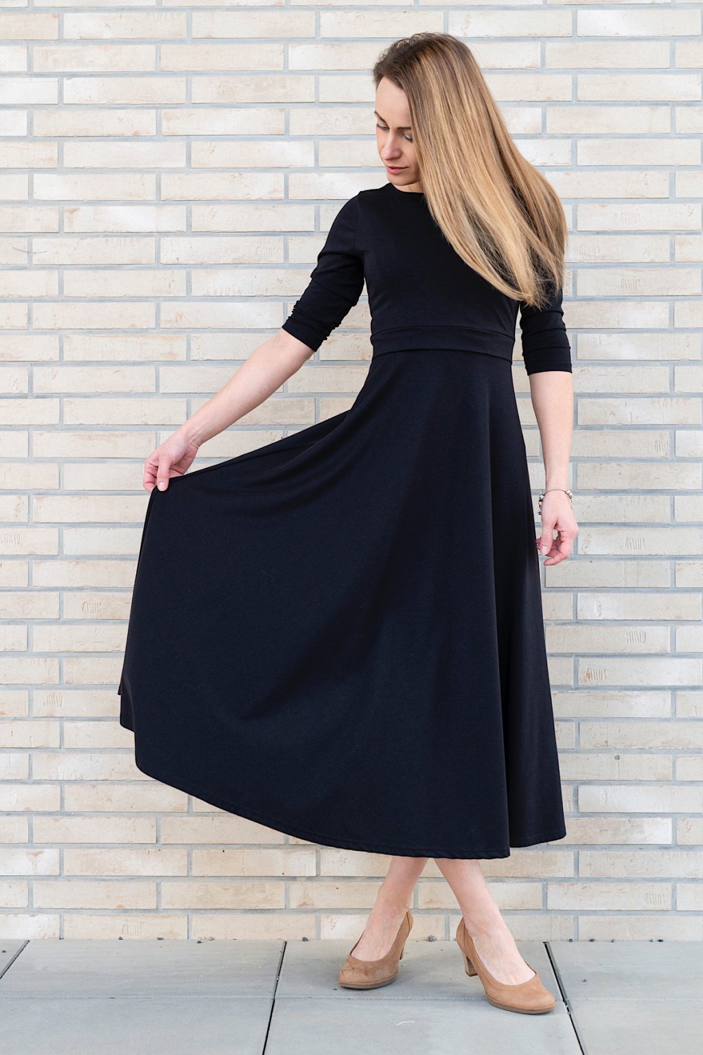 2) Vrchní část pod prsy je zakončena ŠIROKÝM 3CM LEMEM. Ten je nejen praktický pro snadný přístup ke kojení, ale právě díky své šíři krásně vrátí top na obvod hrudníku. Šaty tak dělají krásnou postavu i s poporodním bříškem.