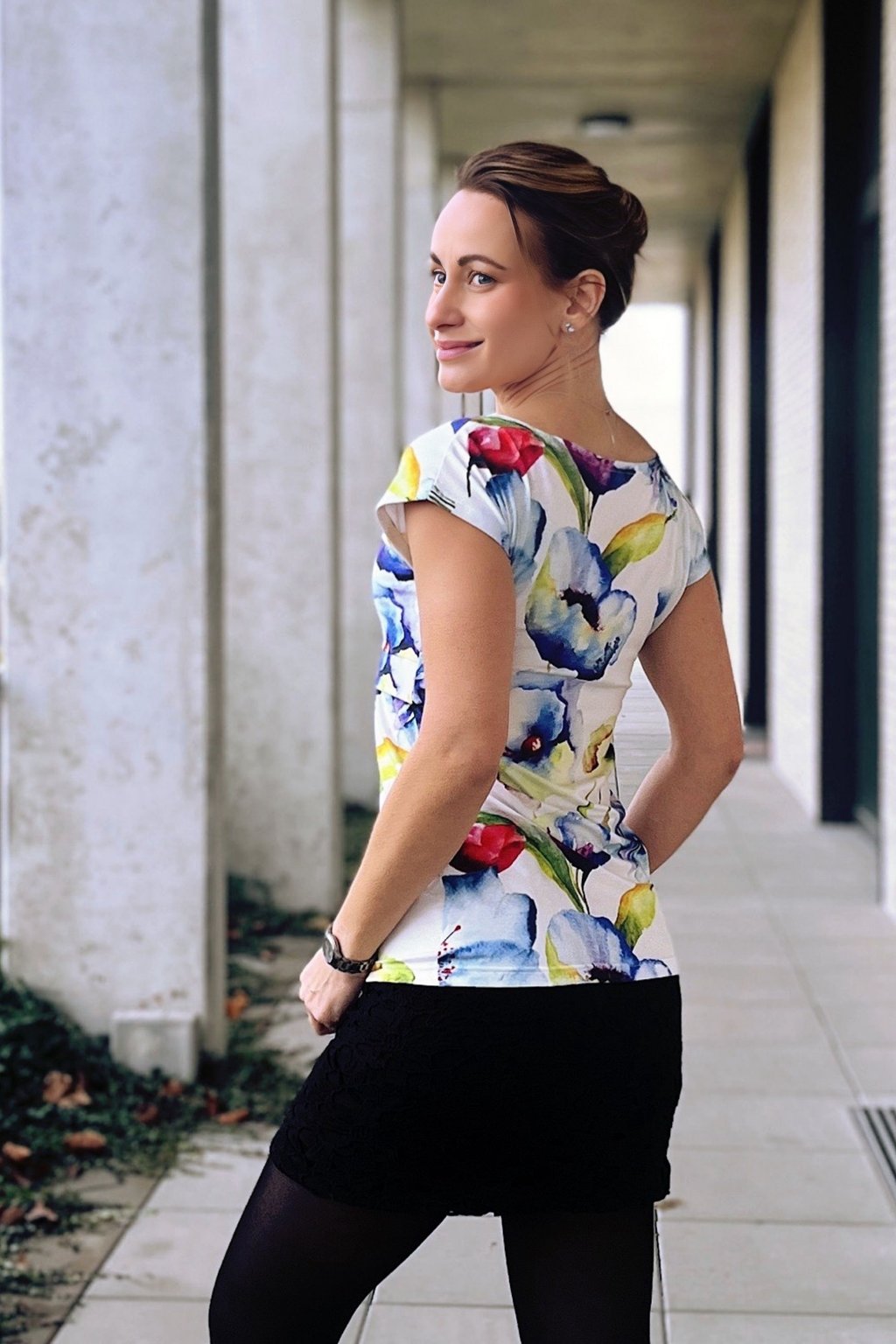 Dlouhé roky jsem působila jako manažerka, ale po narození dětí bylo jasné, že tempo budu muset této své nové roli uzpůsobit. Přesto jsem se občas v roli s "Business formal" dress code přirozeně ocitala a nešlo to kombinovat s jen tak ledajakým "kojo" tričkem. Zároveň jsem se těžce vybojovaného kojení odmítala vzdát. A tak jsem oprášila svůj textilní diplom a začala tvořit - zprvu pro sebe - kolekci speciálně upravených halenek/triček/šatů pro diskrétní kojení.