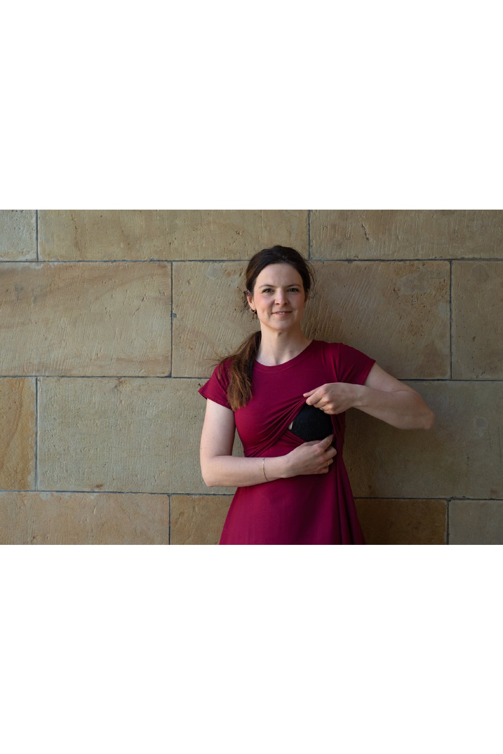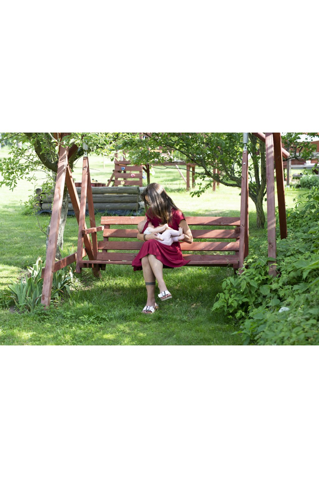 Šaty Camilla umožňují pohodlné a diskrétní kojení, a to především díky dvojitému přednímu dílu. Jak to funguje? Horní látka se vyhrne nahoru, spodní se stáhne dolů – a tím miminko snadno získá přístup k maminčinu mlíčku. Vše je velmi jednoduché a praktické, žádné knoflíčky ani zipy. Ideální řešení, pokud své dítko potřebujete sem tam nakojit na veřejnosti.