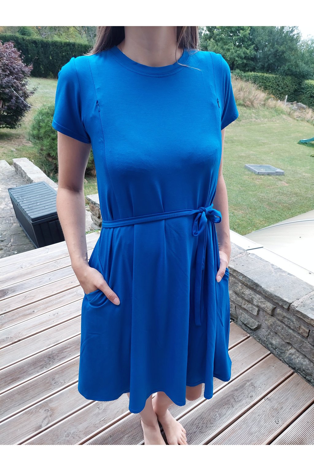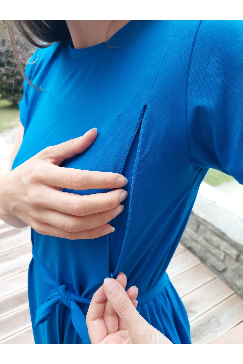 Bambusové kojicí šaty se skrytými zipy – královsky modré