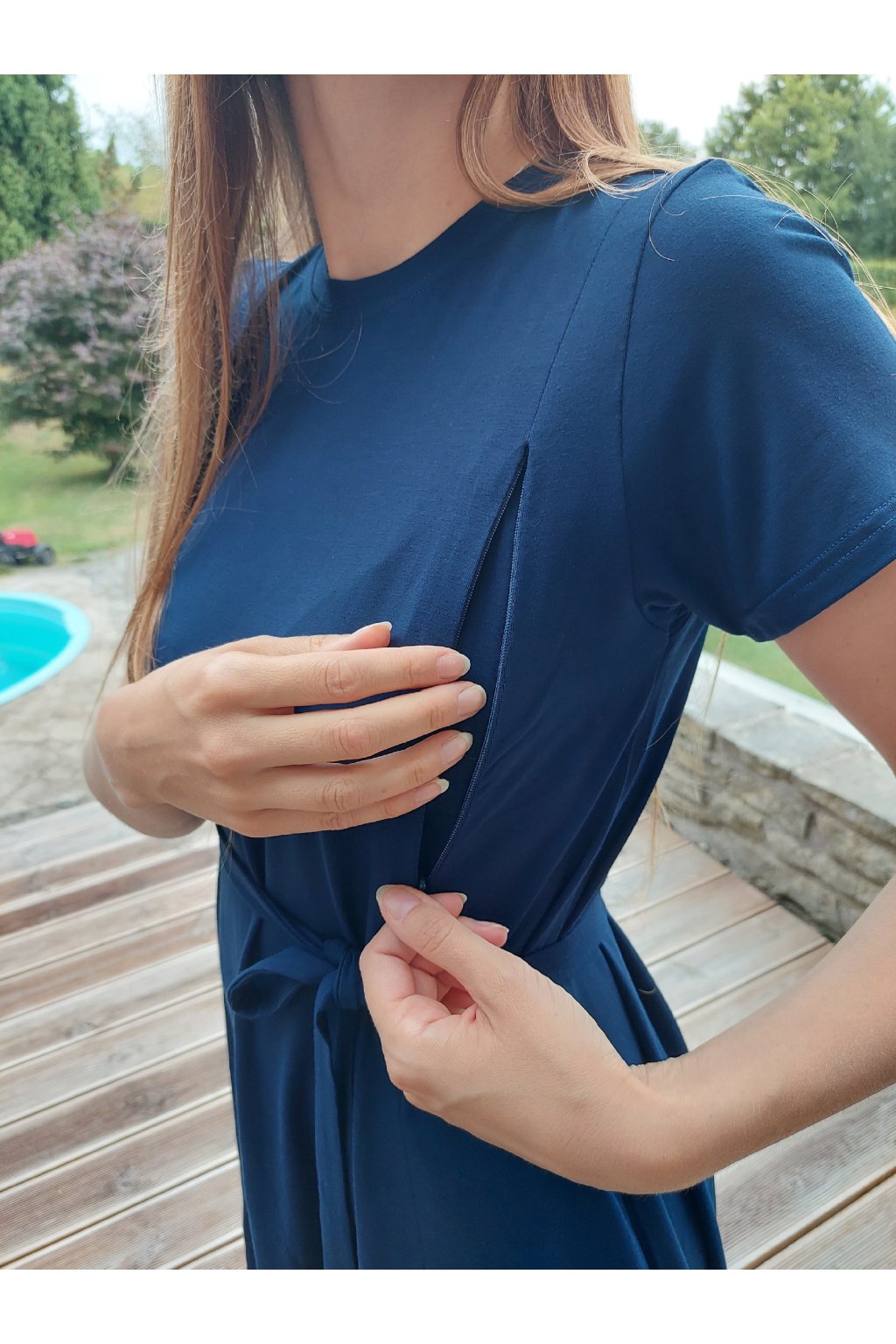 Bambusové kojicí šaty se skrytými zipy – tmavě modré