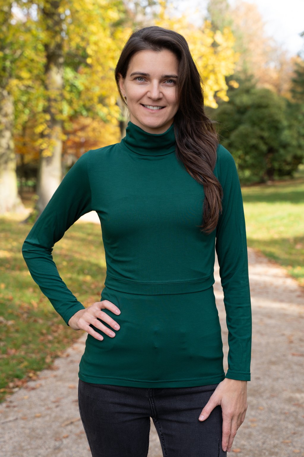 Náš kojicí rolák má projmutý střih a díky své pružnosti výborně sedí, takže dokáže vašemu těhotenskému či poporodnímu bříšku poskytnout dostatek pohodlí. Rolákové provedení (až ke krku) oceníte zvláště v zimních měsících, protože vám nebude foukat pod bundu.