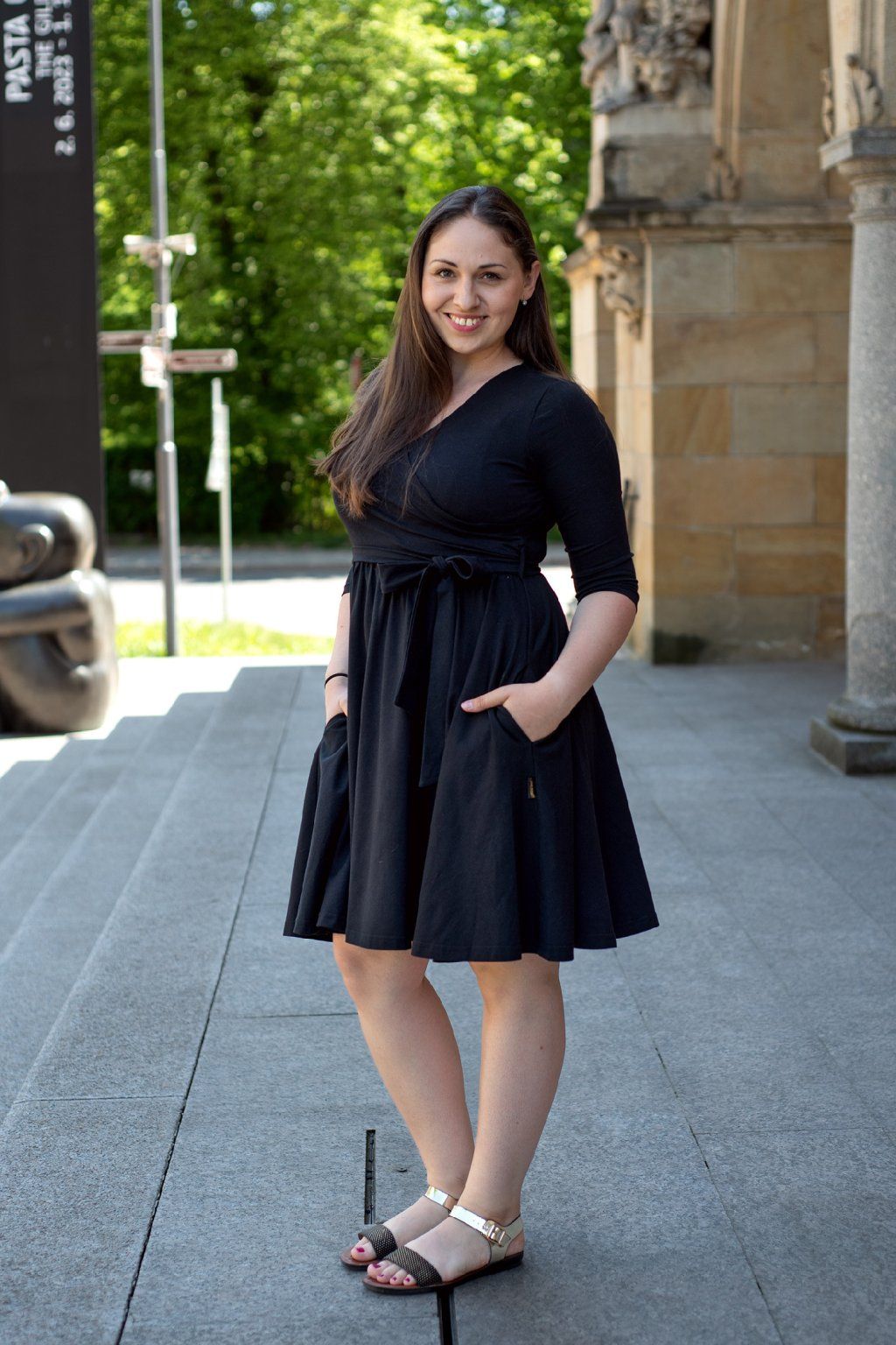Bavlněné kojicí šaty s kapsami, 3/4 rukáv, černé, II. jakost