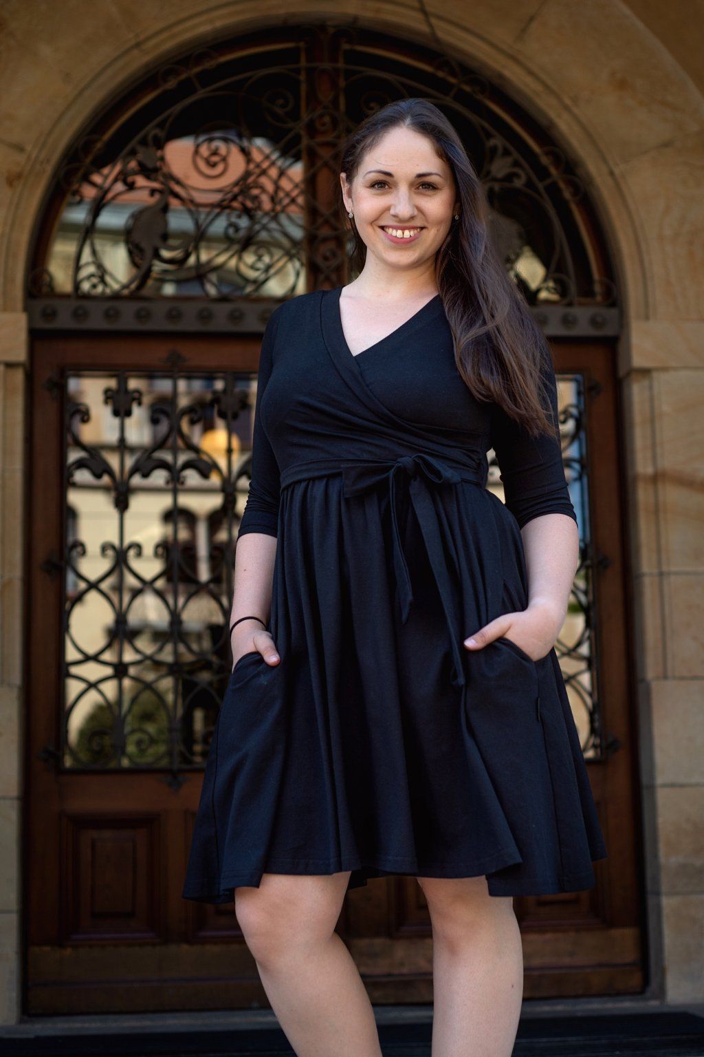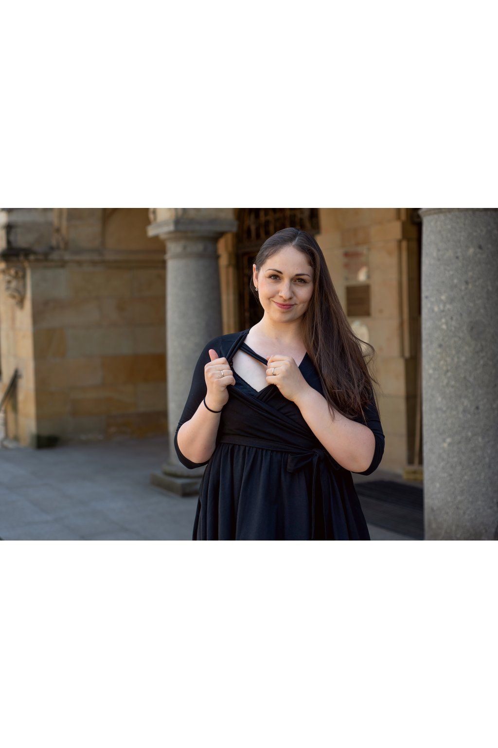 U těchto kojicích a těhotenských šatů se na kvalitním přírodním bavlněném úpletu rozhodně nešetřilo. Je fantasticky přizpůsobivý a jemný, zamilujete si ho na první dotek. Kojící šaty s kolovou sukní se hodí pro všechny příležitosti, takže je unosíte během celého roku. Minimalistický a decentní design snadno doplníte jakýmkoliv šperkem či jiným kouskem oblečení z vašeho šatníku. Diskrétní kojení zaručuje speciální vsadka, která je důmyslně všita za přední zavinovací díl. Díky tomu nemusíte odhalovat celá prsa, ale pouze tu část, která je zrovna potřeba. U šatů oceníte také praktické kapsy a vázačku pod prsy, kterou šaty můžete stáhnout či ozdobit mašlí dle libosti.
