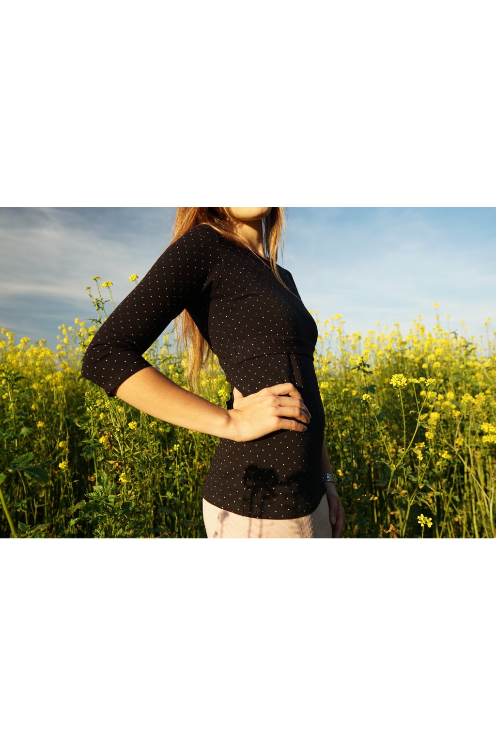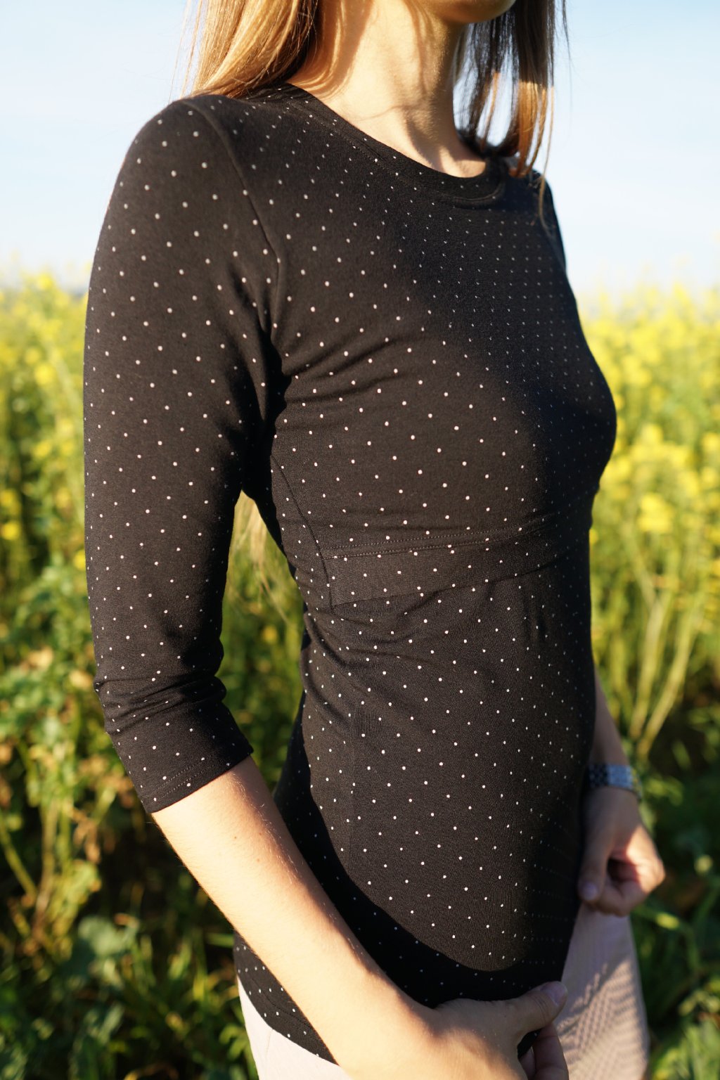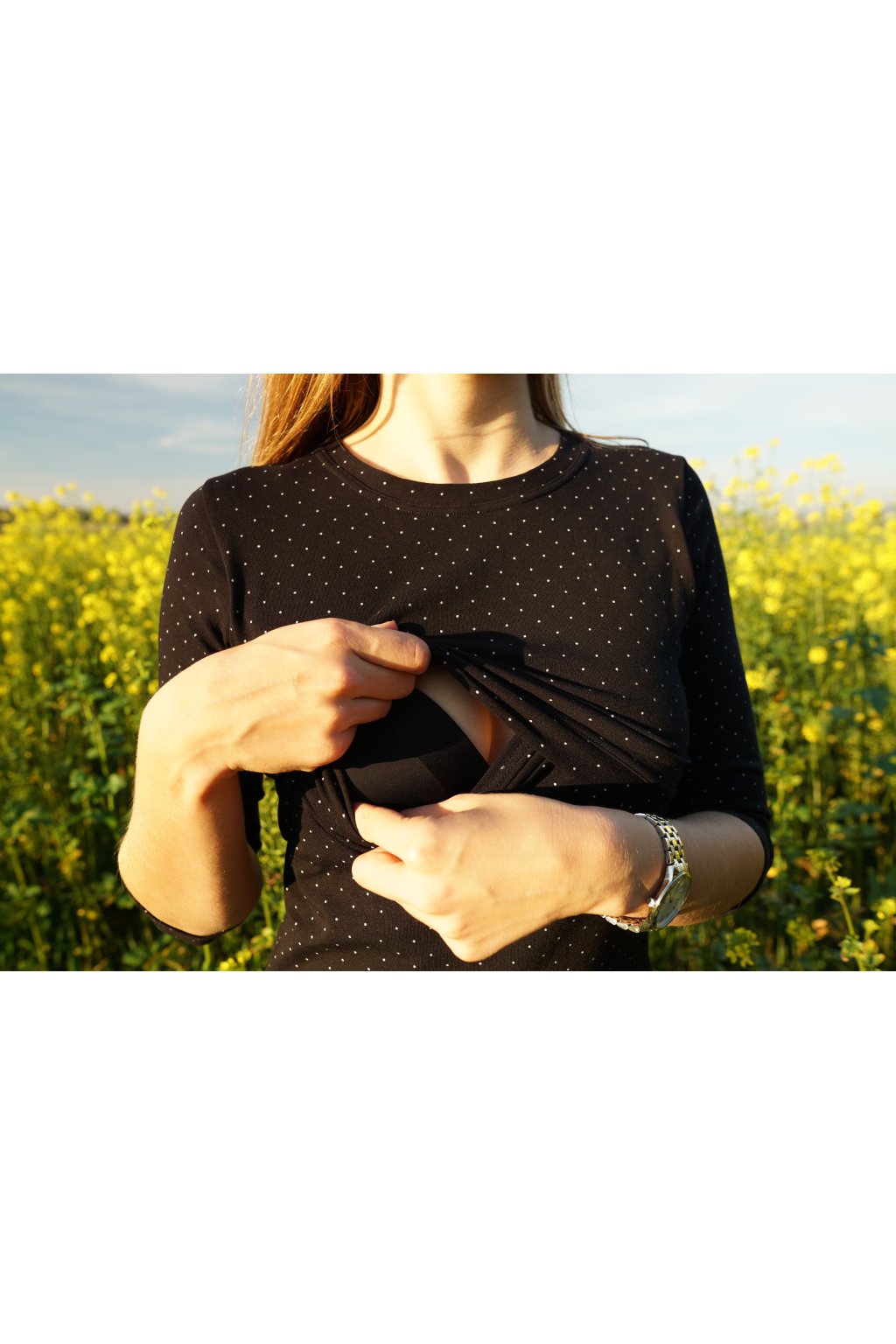 Bavlněné kojicí tričko Jsem máma s 3/4 rukávem, černé s puntíky