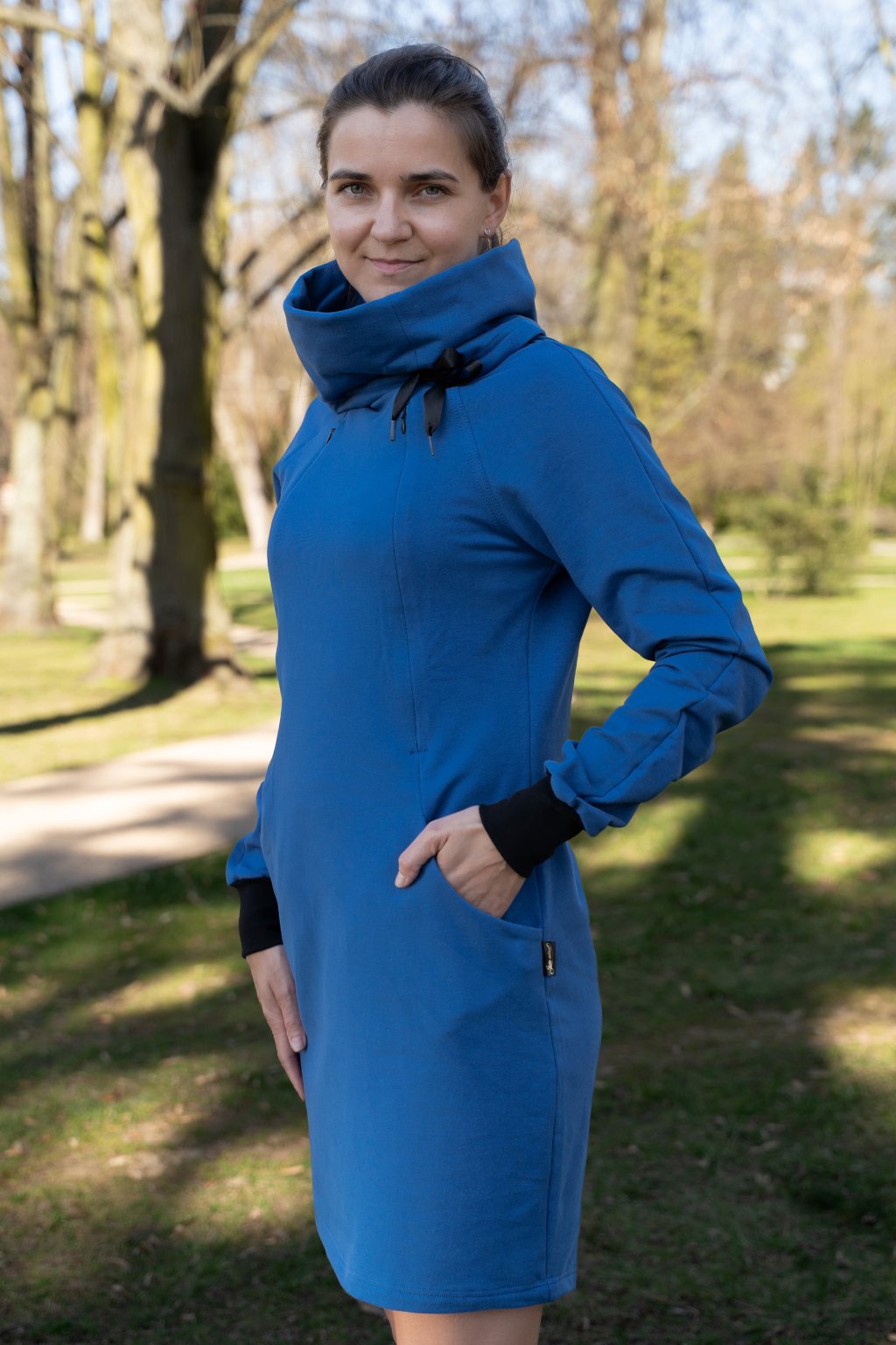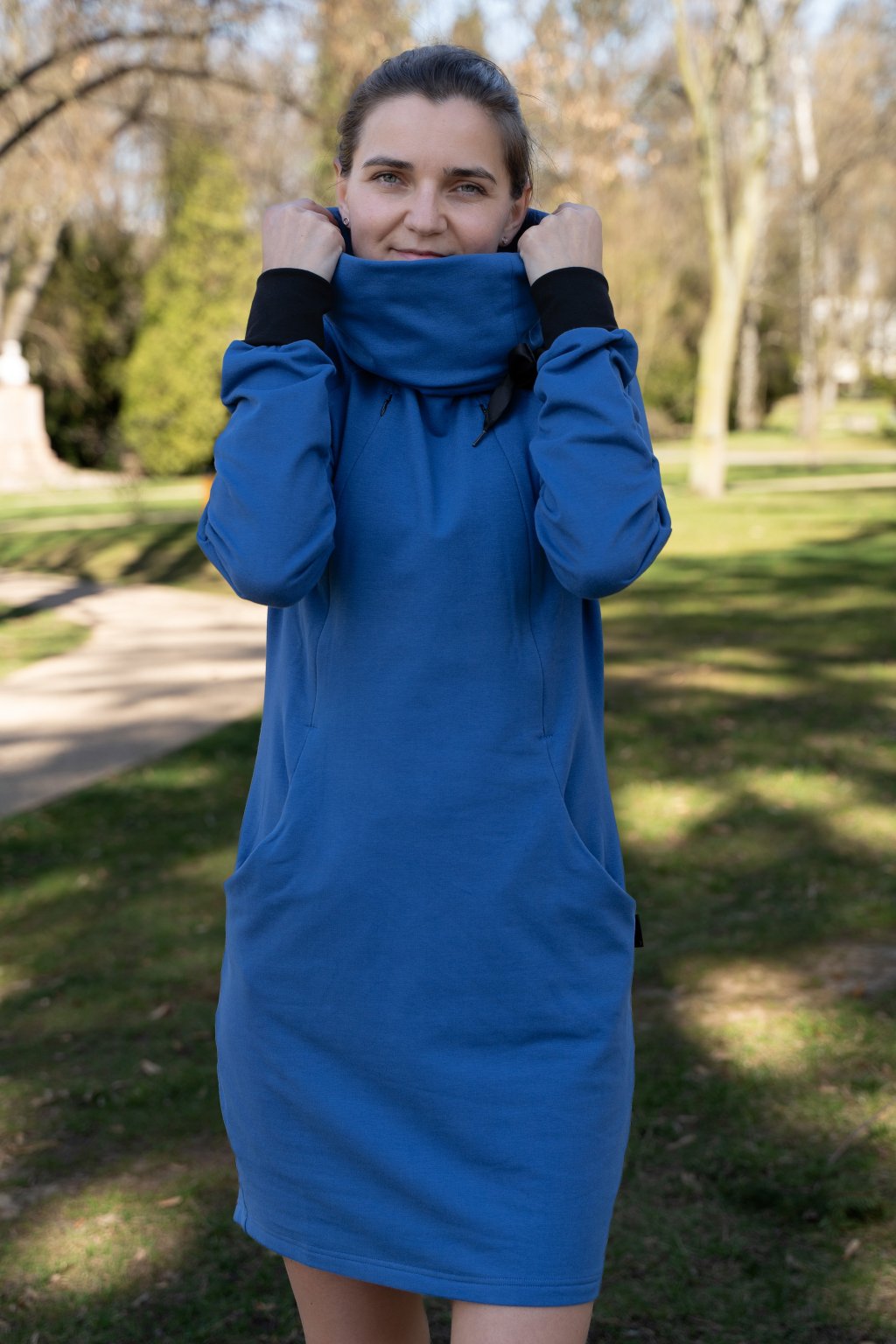 BIO kojicí mikinové šaty se skrytými zipy Jsem máma Modré