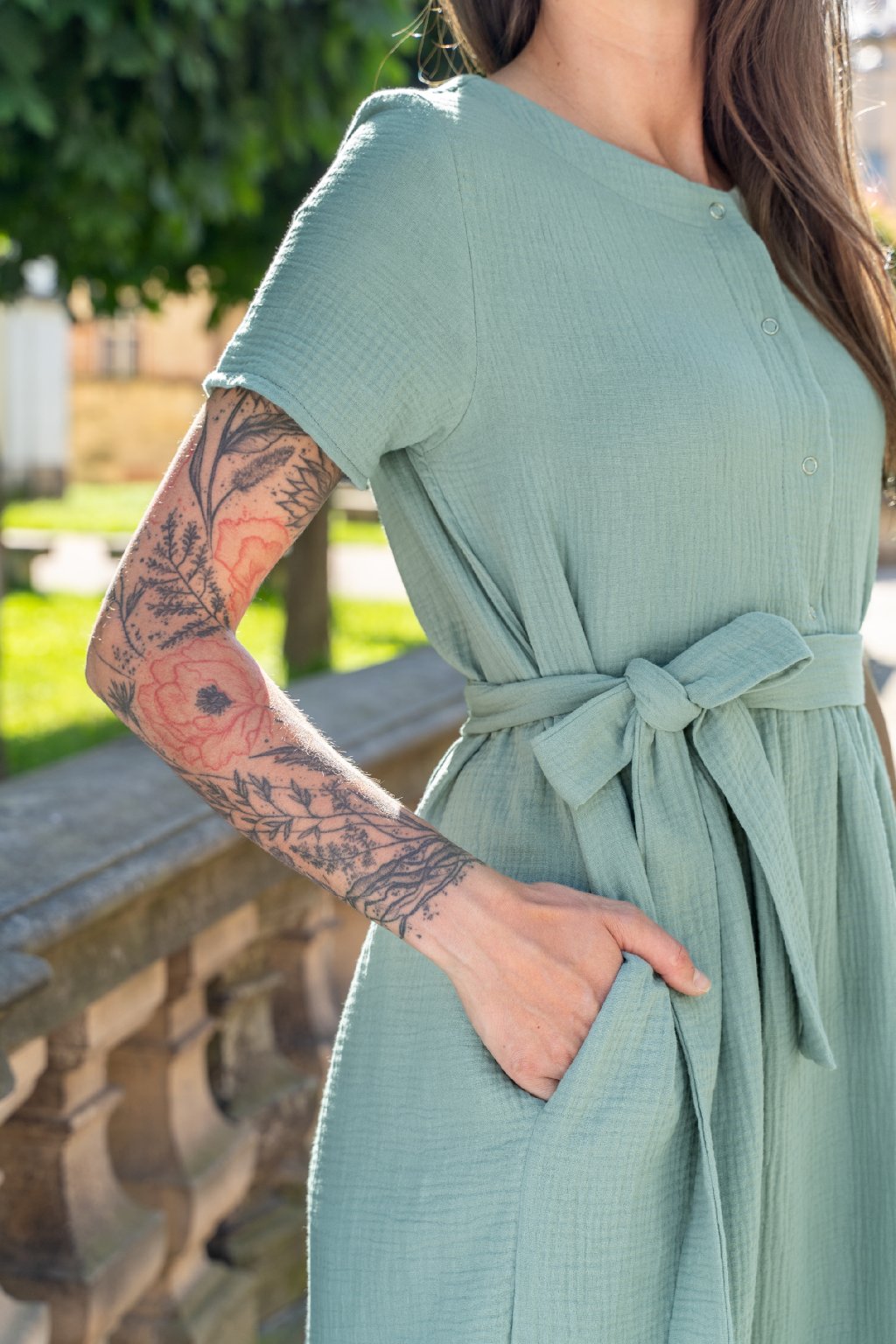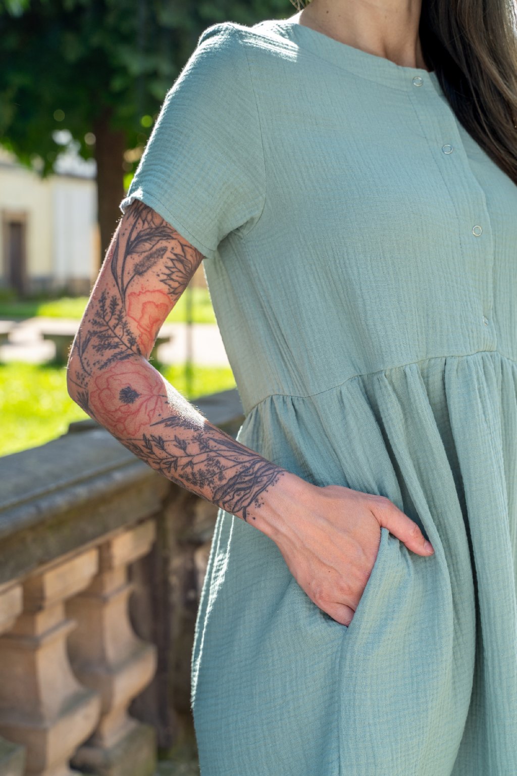 Díky dvojité vrstvě gázoviny naše šaty neprosvítají, nemačkají se, jsou prodyšné a výborně větrají. Mušelín přináší nejen skvělý pocit během nošení, ale také výjimečný vzhled. Jeho jemné záhyby a textury vypadají zajímavě, stylově a neobvykle. Jsme si jistí, že se stanou vaším oblíbeným kouskem, po kterém budete sahat nejčastěji.