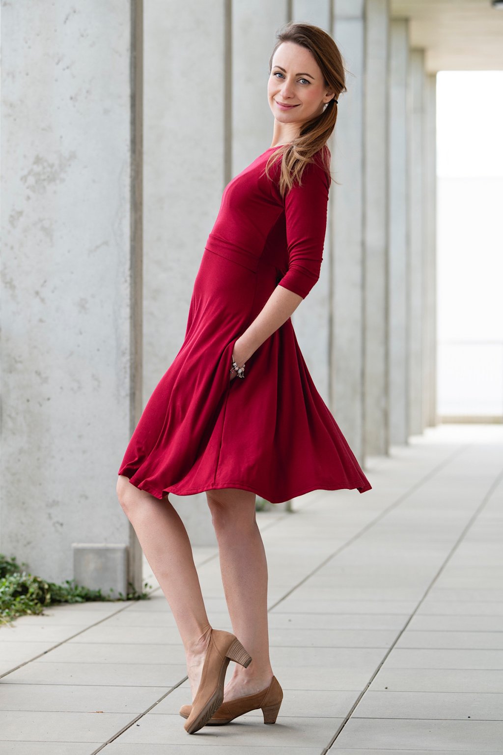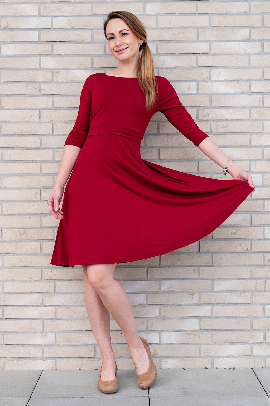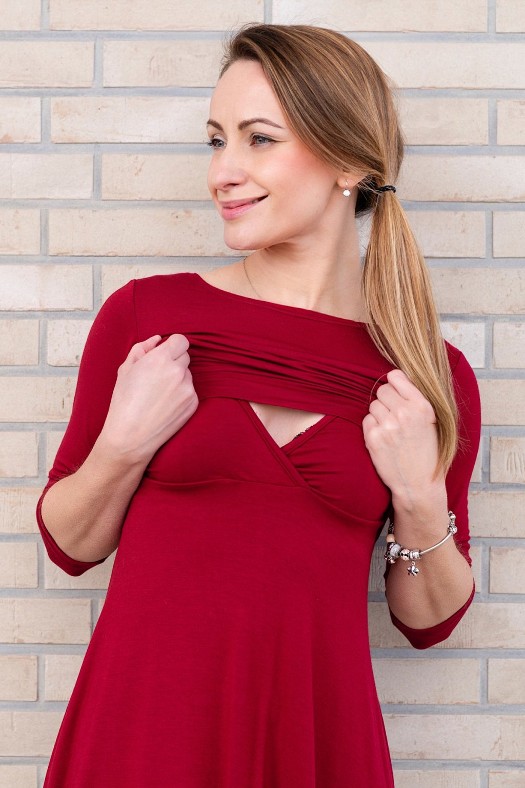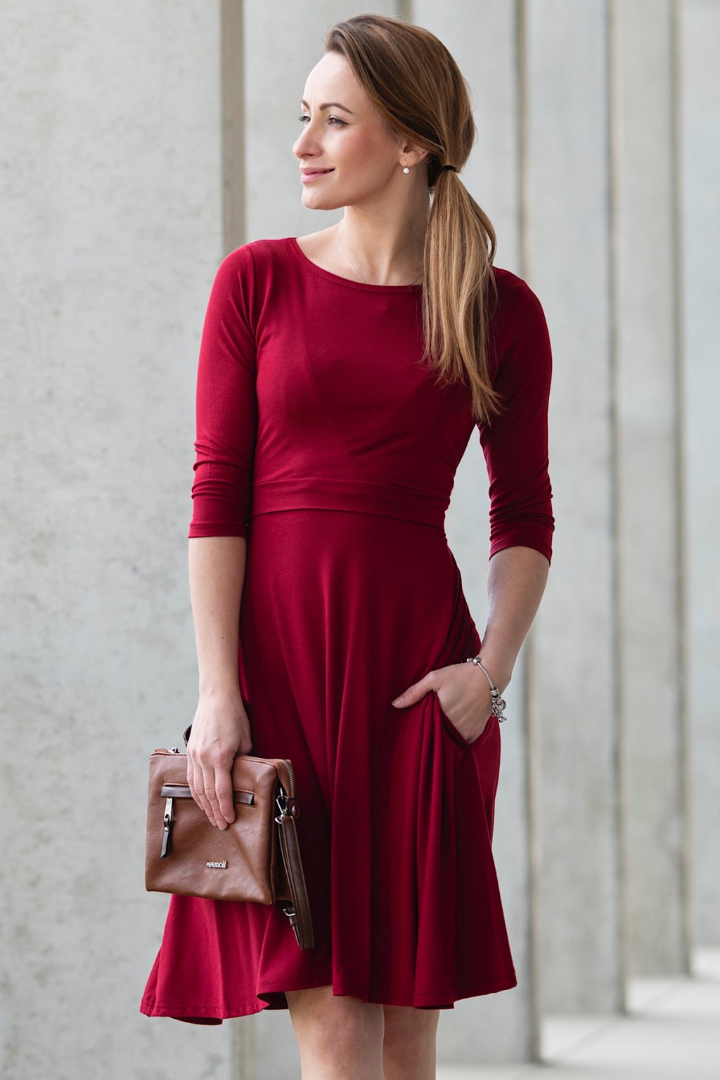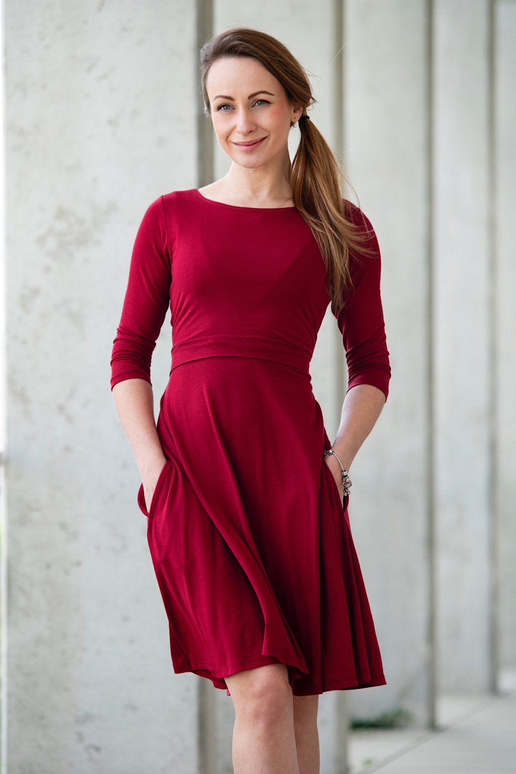 Celoroční kojicí šaty Amalie s kapsami VÍNOVÉ