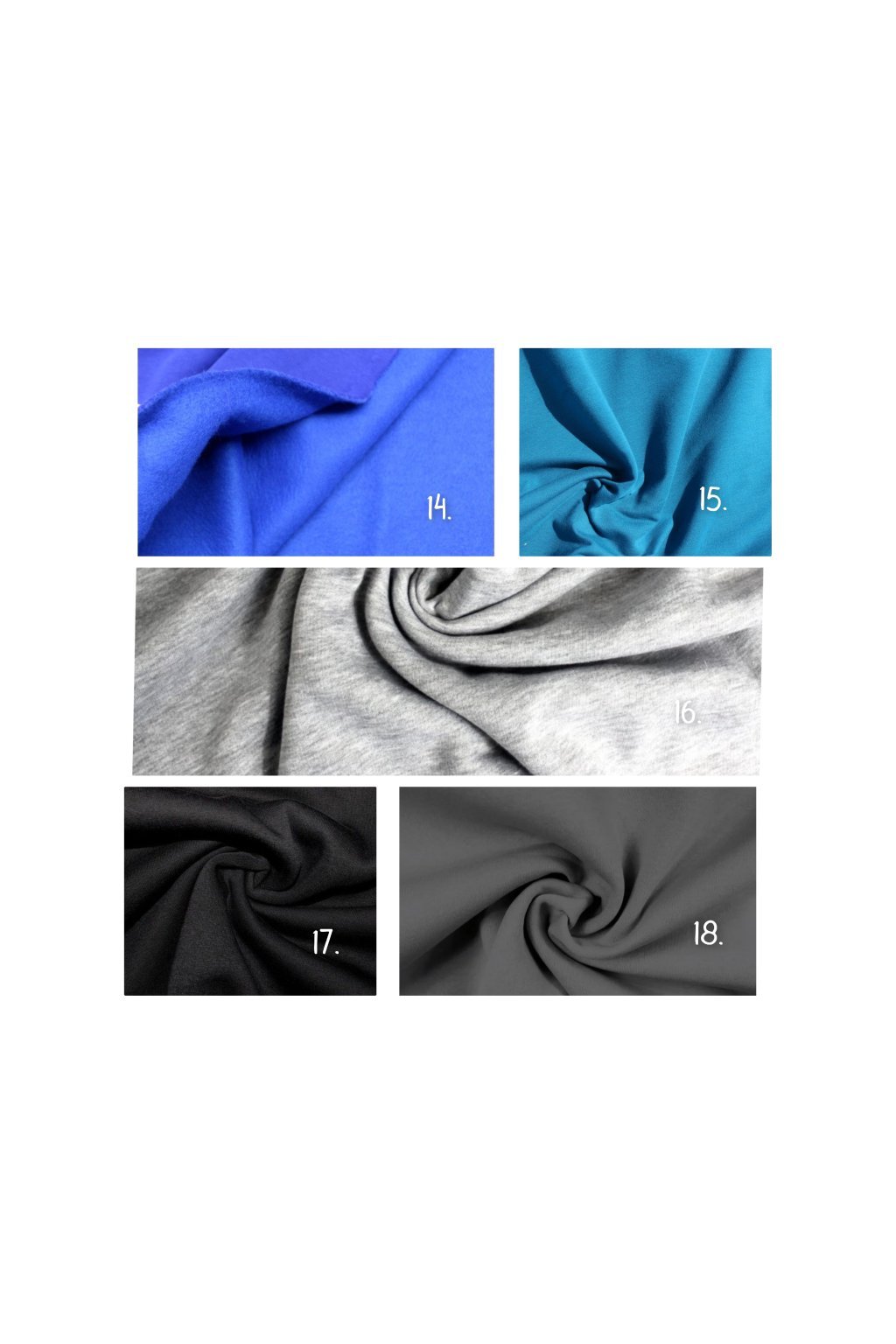 Výběr barvy: Ve fotogalerii najdete vzorník barev, ze kterých je možné mikinu ušít. Také je potřeba uvést číslo barvy do poznámky!!!