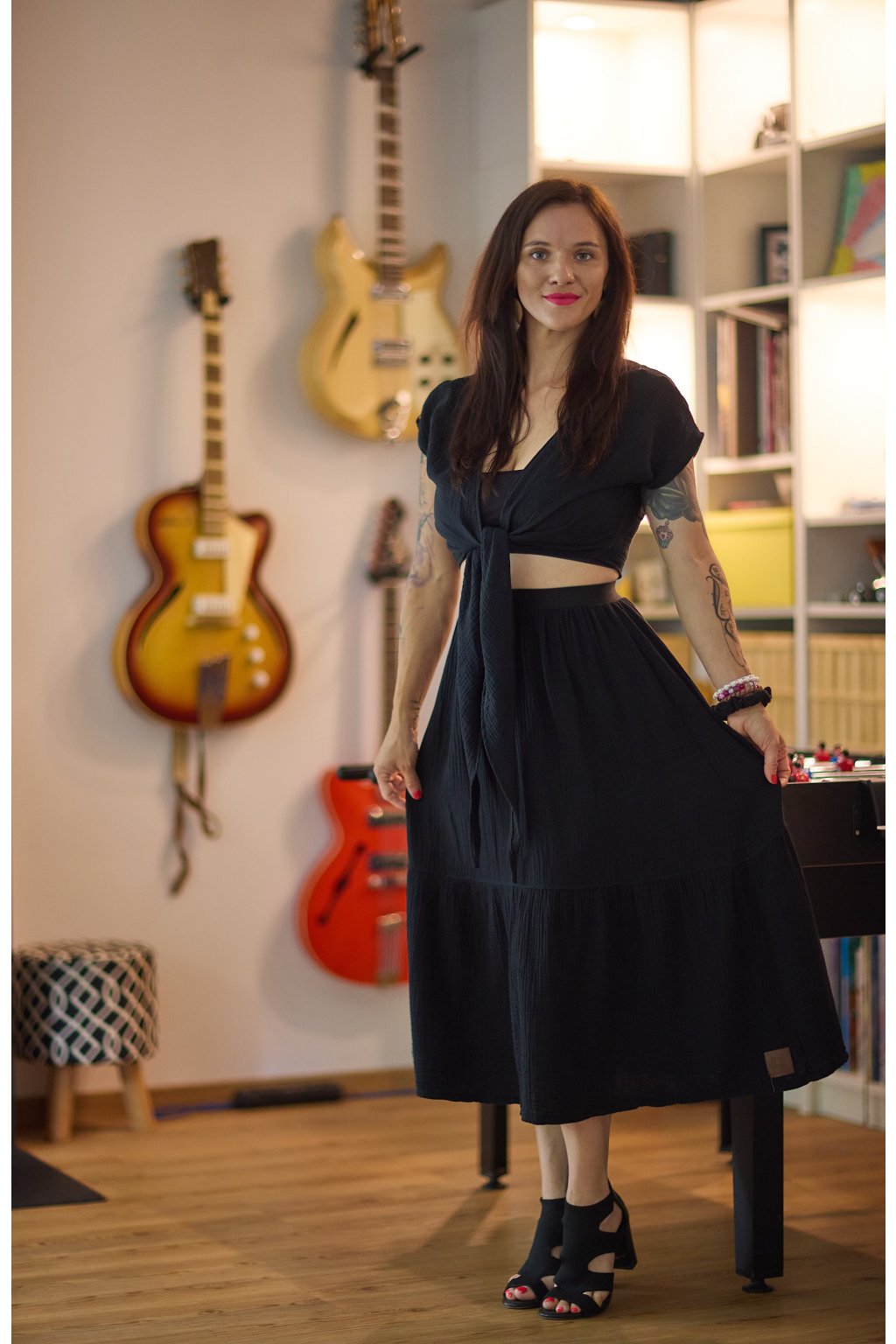 Sukně je dlouhá pod kolena. Sedí krásně.