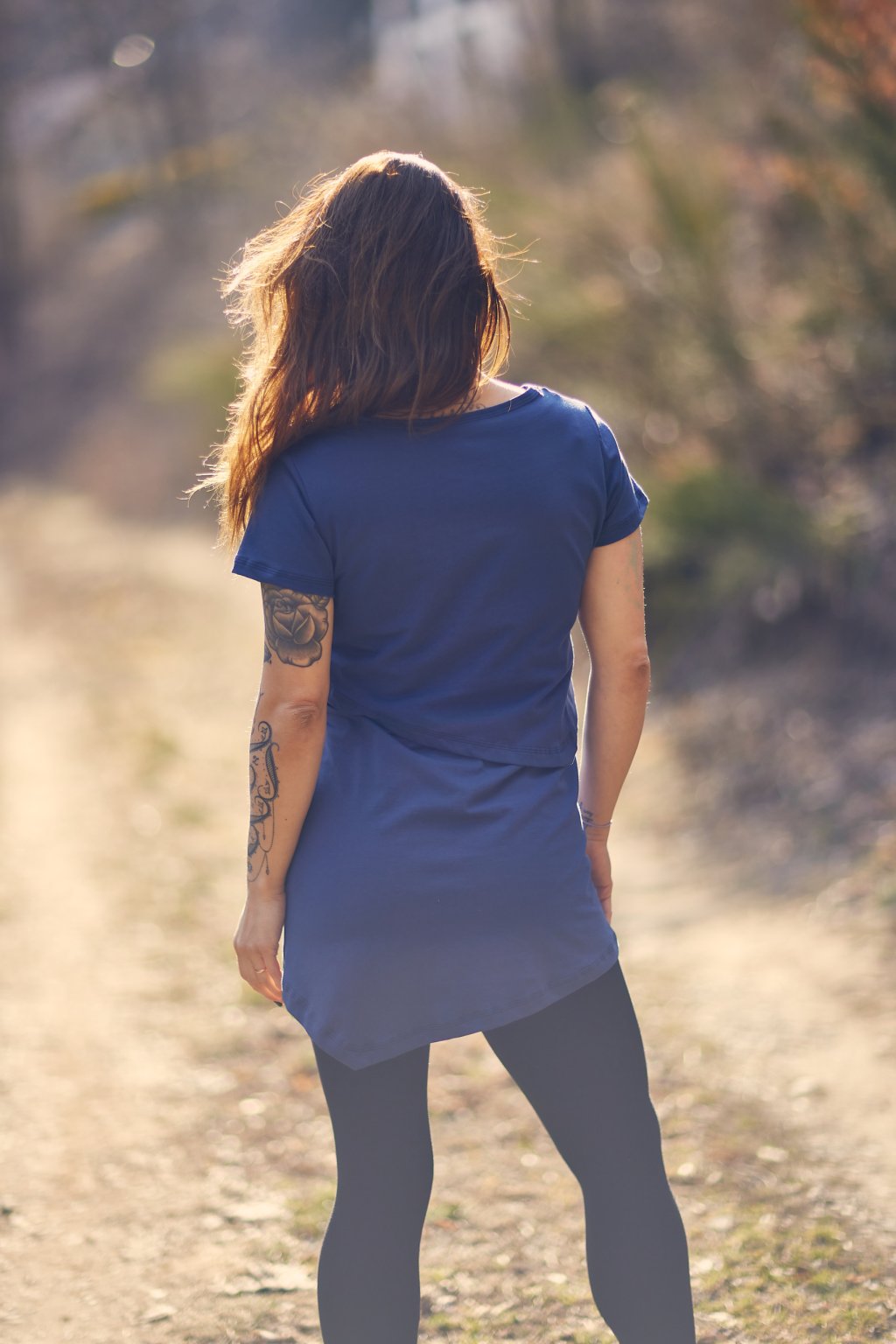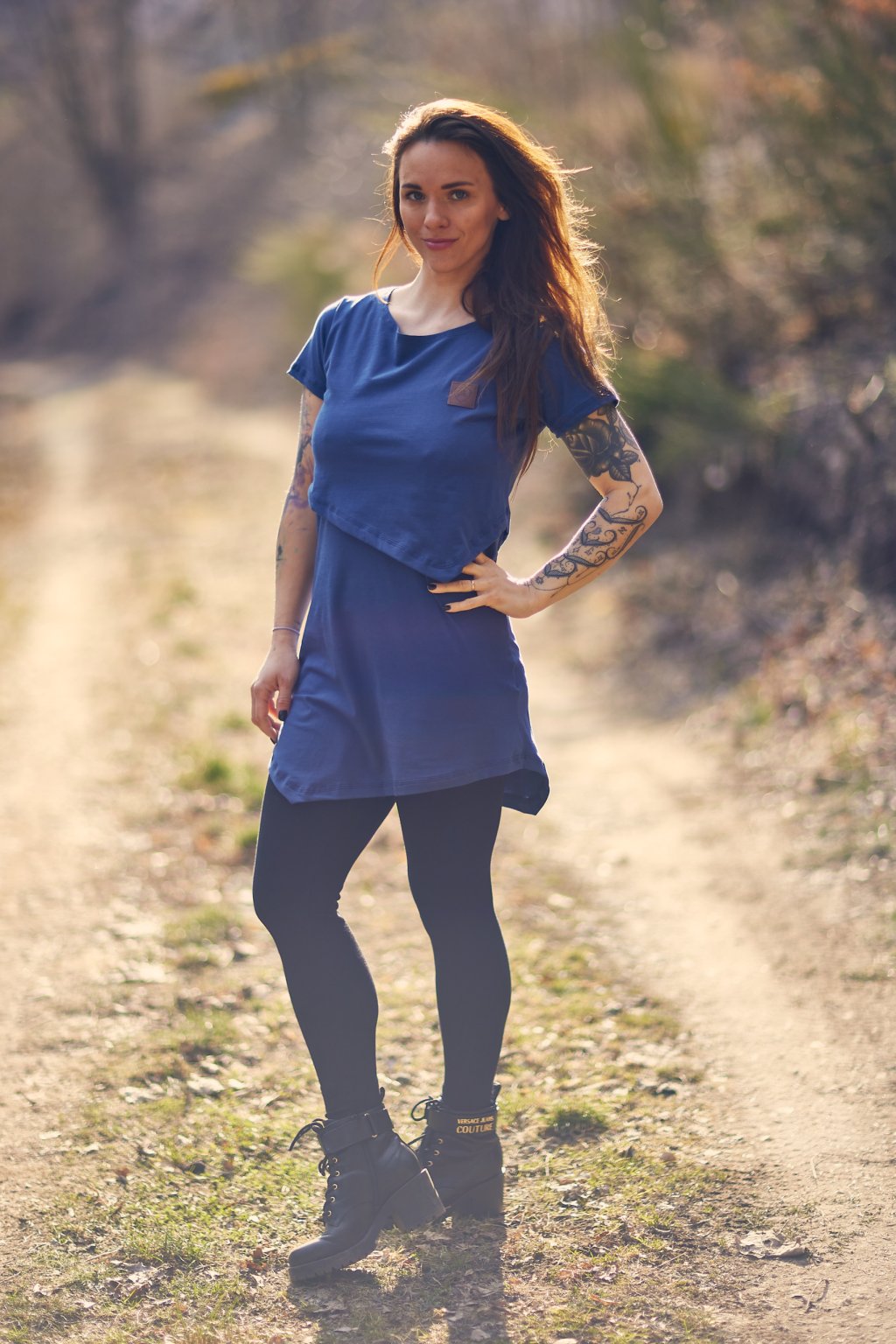 DÁMSKÉ Asymetrické "KOJICÍ I NEKOJICÍ" tričko JEANS (krátký rukáv)