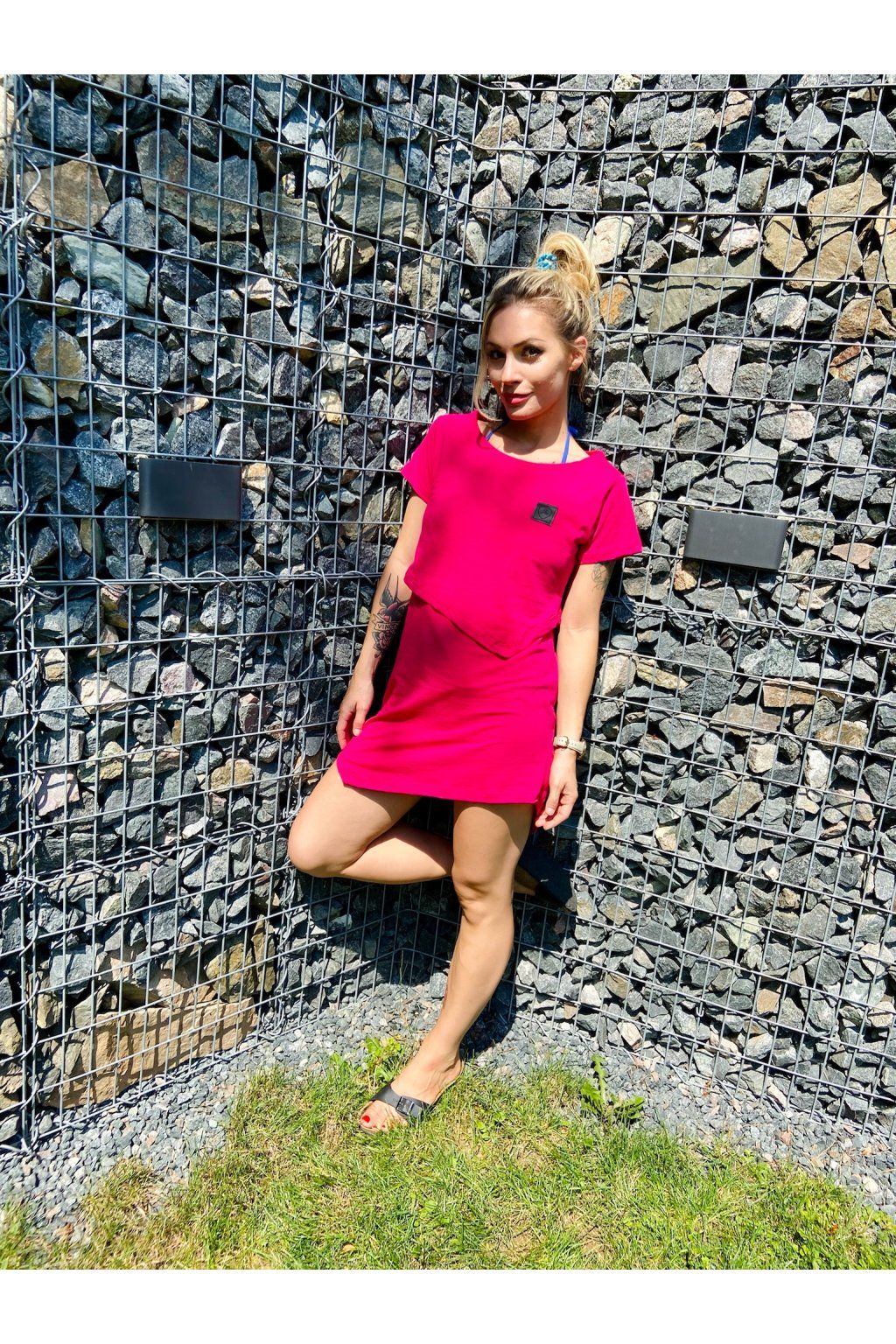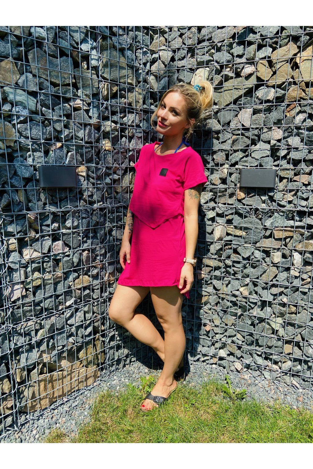 DÁMSKÉ Asymetrické kojIcí tričko MAGENTA (krátký rukáv)