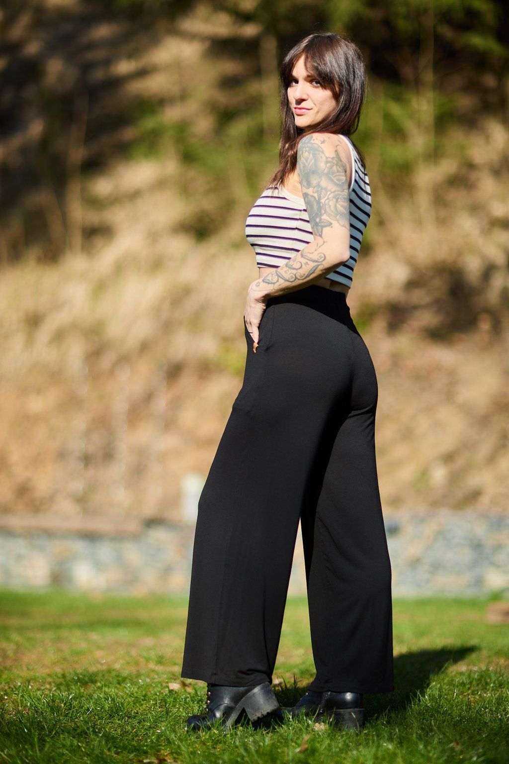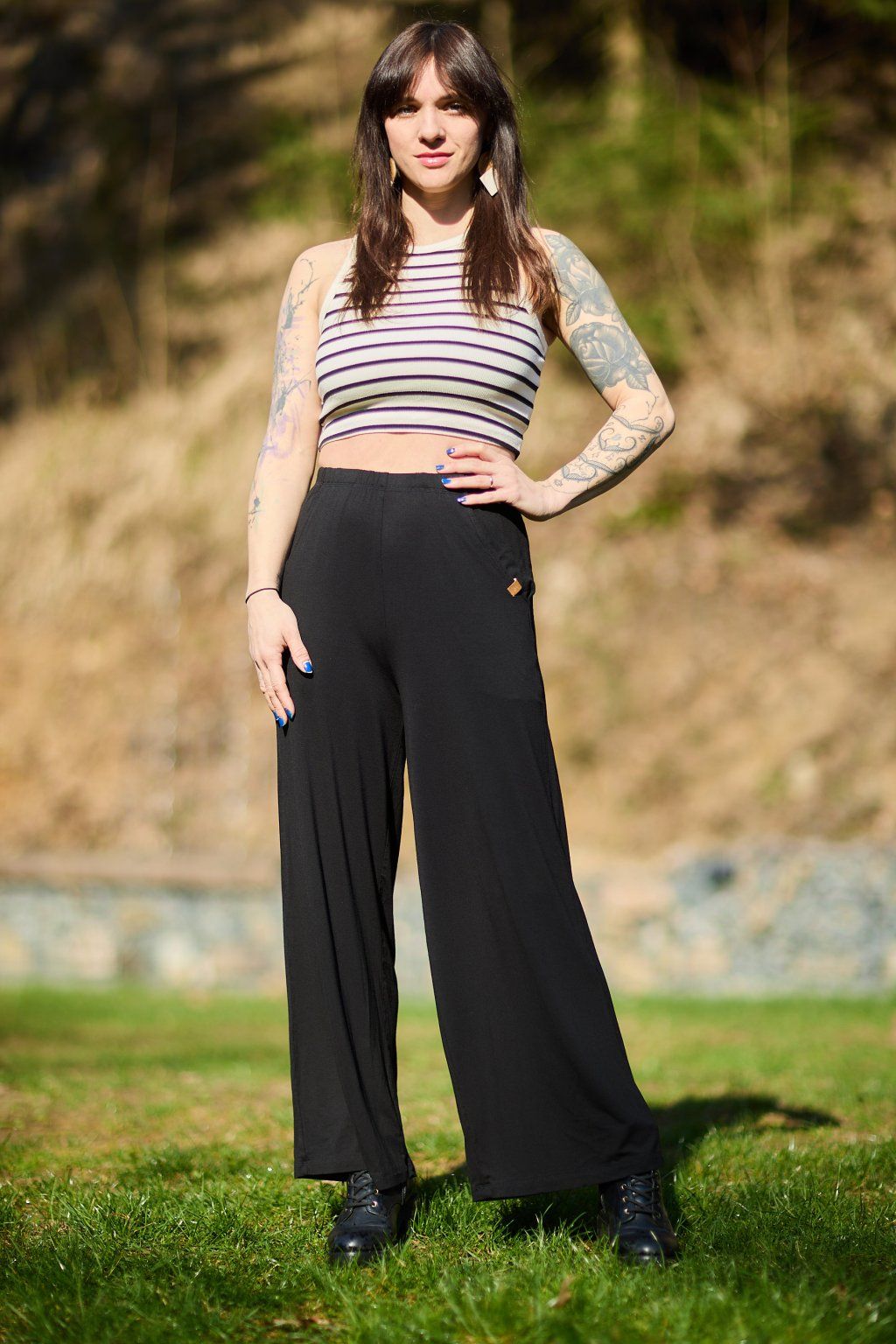 Kalhoty Business jsou ušité z elastické, splývavé viskózy, která je na nošení velmi pohodlná. V pase jsou do gumy a mají dvě boční kapsy a širší nohavice.