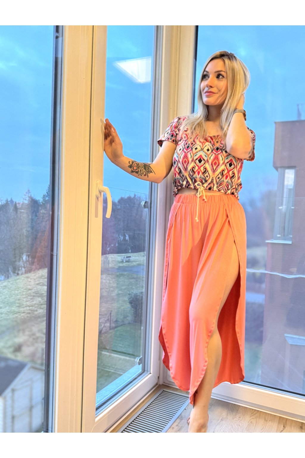 Dámské kalhoty s vysokými rozparky VIVIENNE APPRICOT