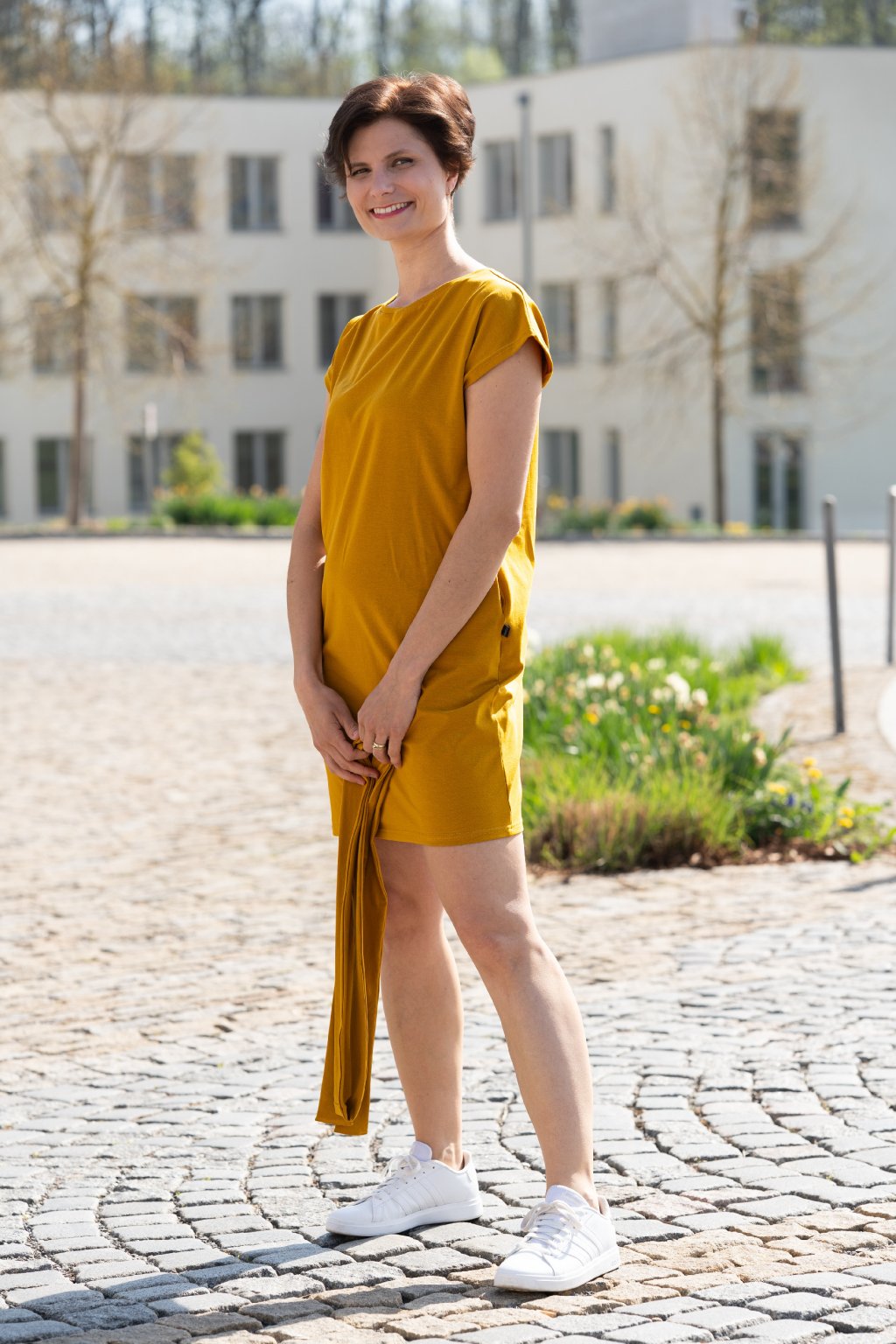 Letní délka působí svěže a nemusíte se bát, že vám v ní bude v létě vedro. Výstřih šatů je vyvážený – dostatečně otevřený, aby působil ženským dojmem, ale stále decentní. A nechybí ani praktické kapsy, které dodávají šatům ležérnější charakter.