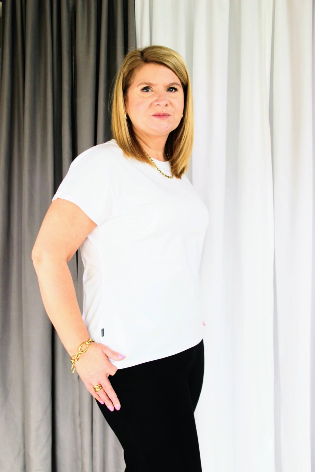 Tričko má čistý, minimalistický vzhled a střih, který lichotí postavě. Hodí se prostě ke všemu – ať už si ho vezmete do práce, na procházku, nebo k domácímu lenošení.