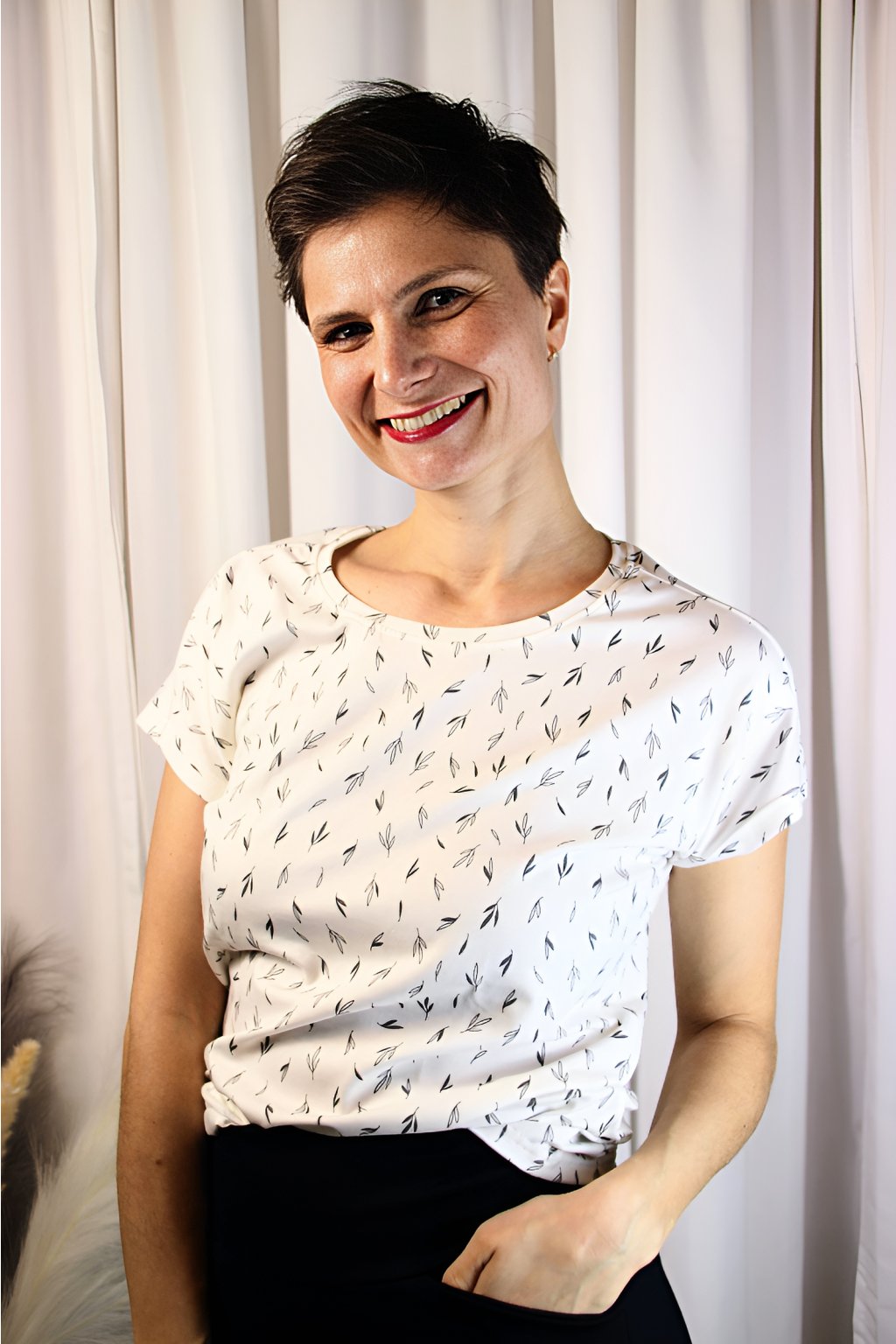 Další důležitou hodnotou je pro ni udržitelná výroba. Tričko šijeme v Česku, v malých dávkách a s minimálním odpadem, abychom šetřili přírodu a podporovali lokální řemeslníky. Věříme, že móda může být krásná a zároveň ohleduplná.
