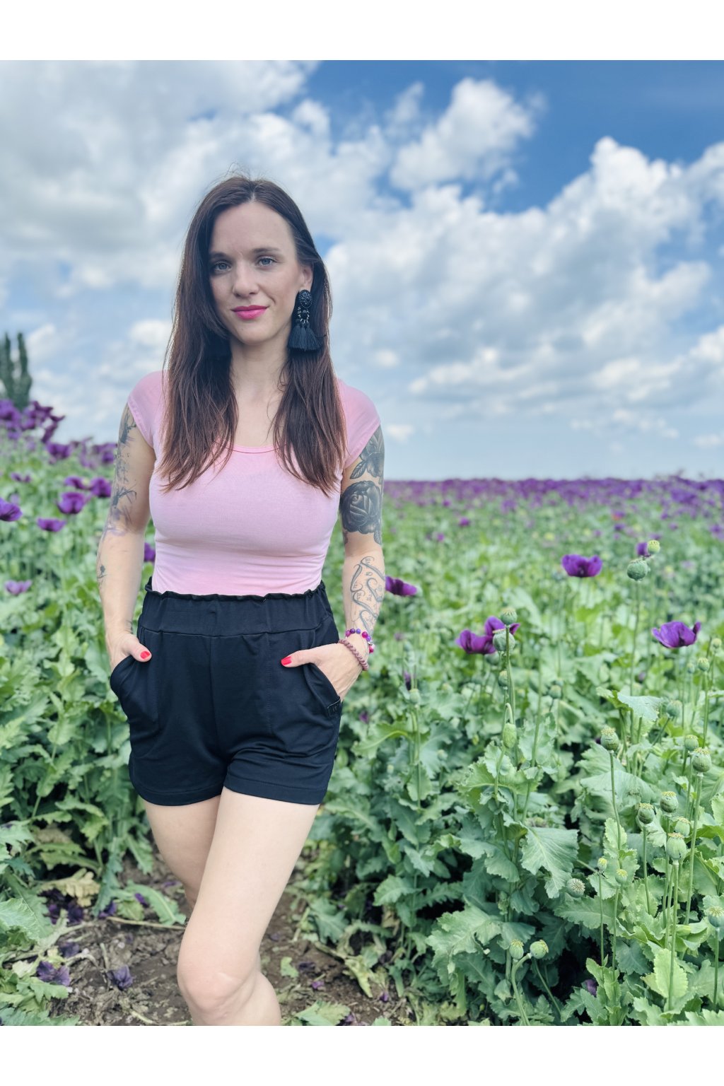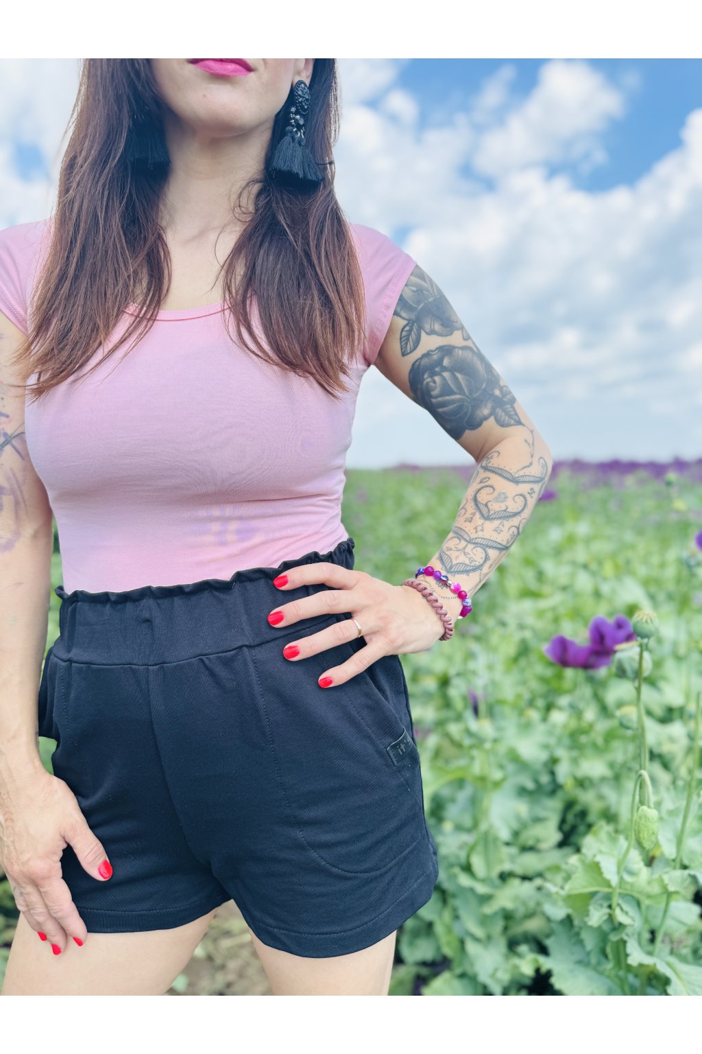 Naše BASIC trička jsou moc slušivá, v pase jsou vyštíhlená, jsou delší a mají hlubší výstřih. Konkrétně bíle tričko je ušité ze slabšího úpletu s elastanem.