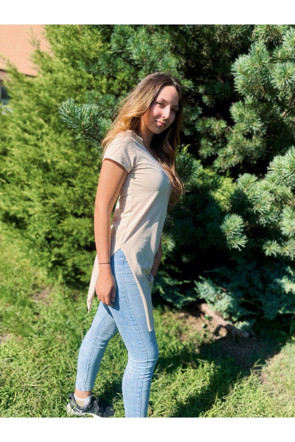 DÁMSKÉ Triko s rozparky DEPP BEIGE (krátký rukáv)