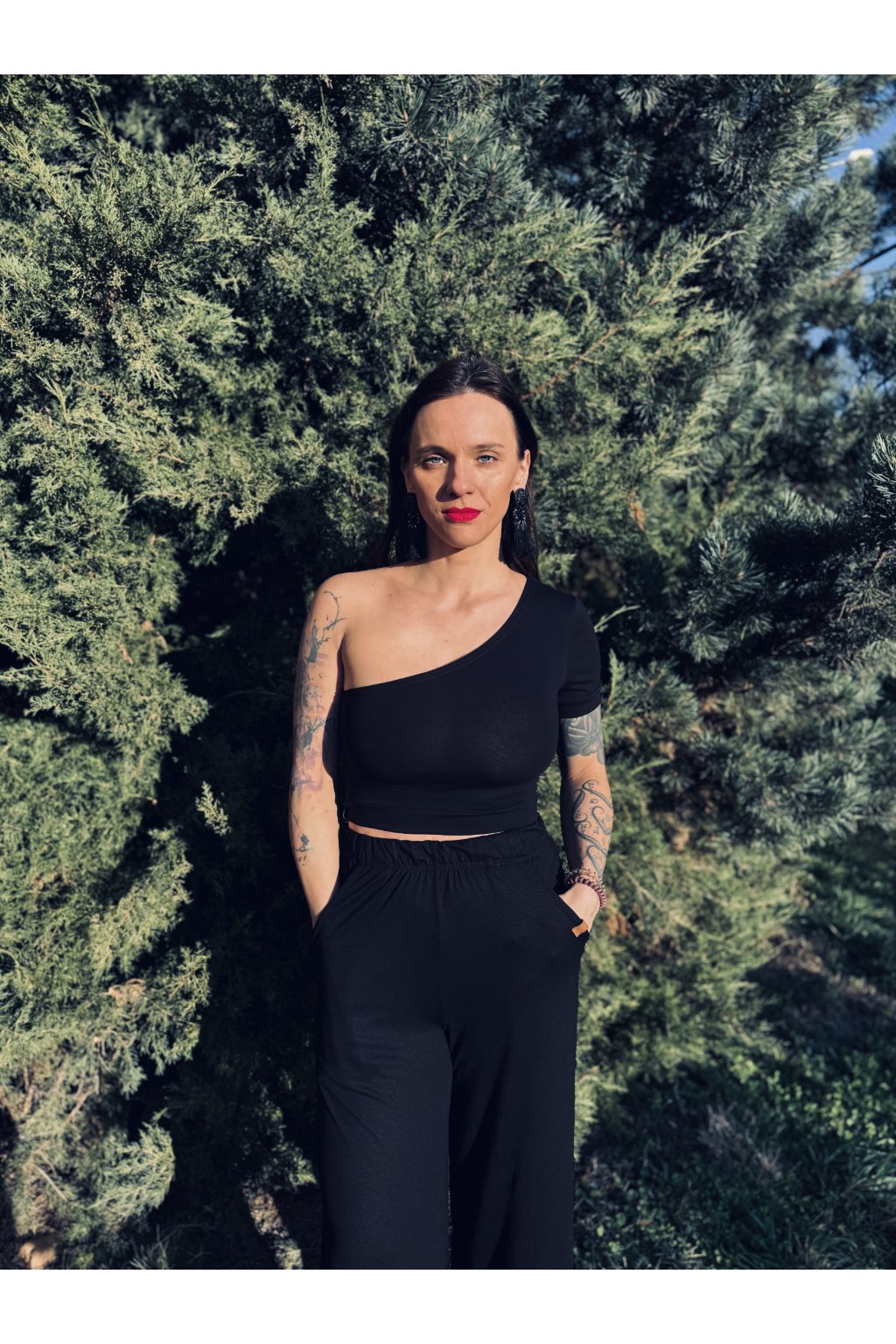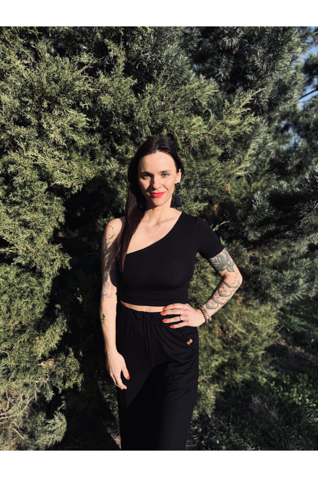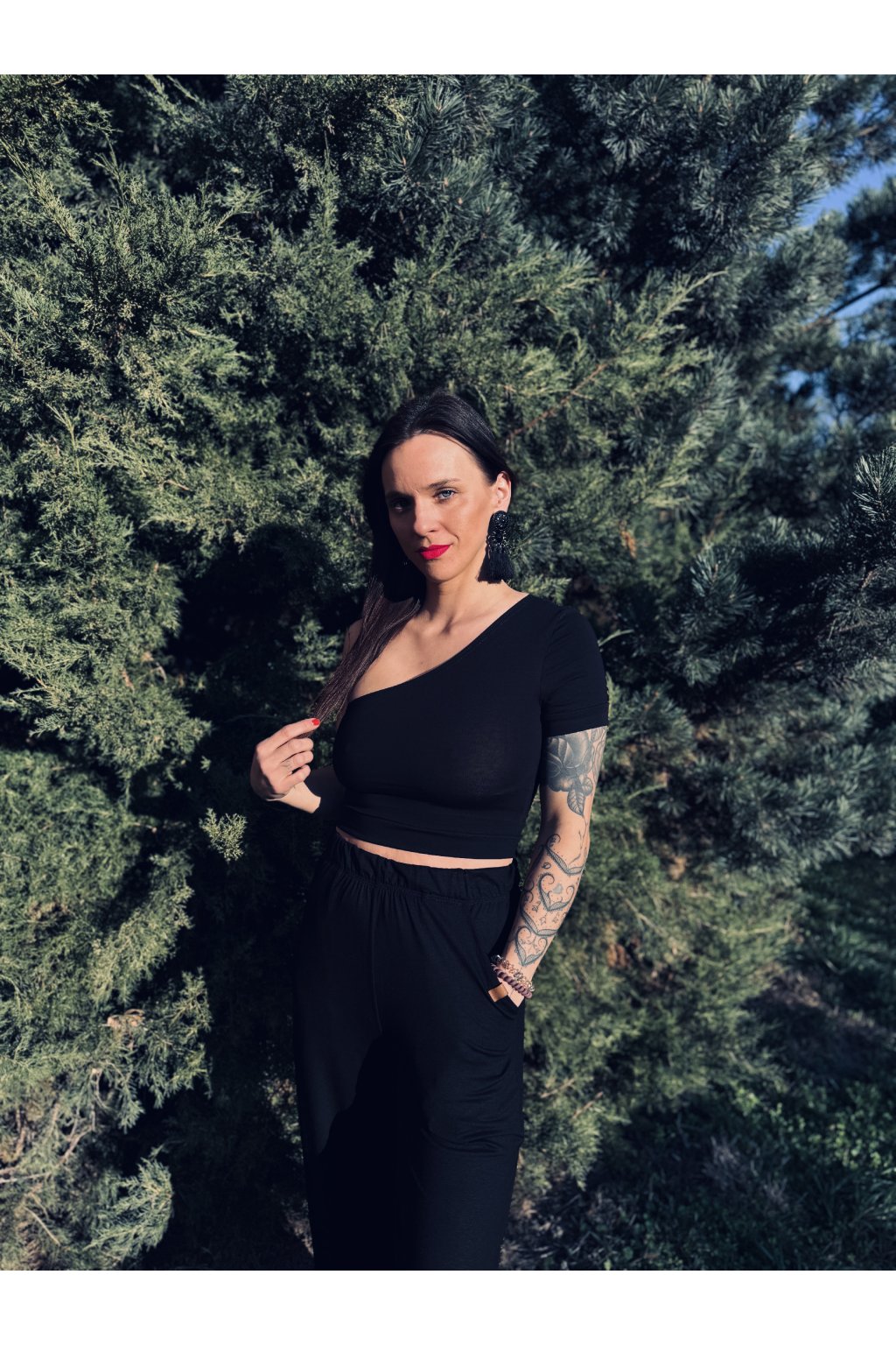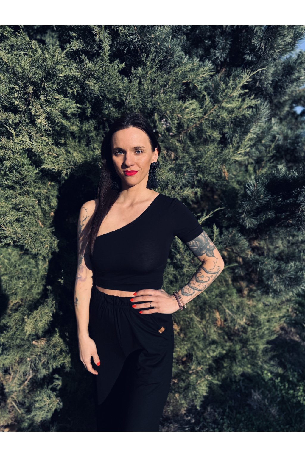 CROP TOP je volný a bude sedět na každé postavě. Hodí se pod něj i podprsenka.