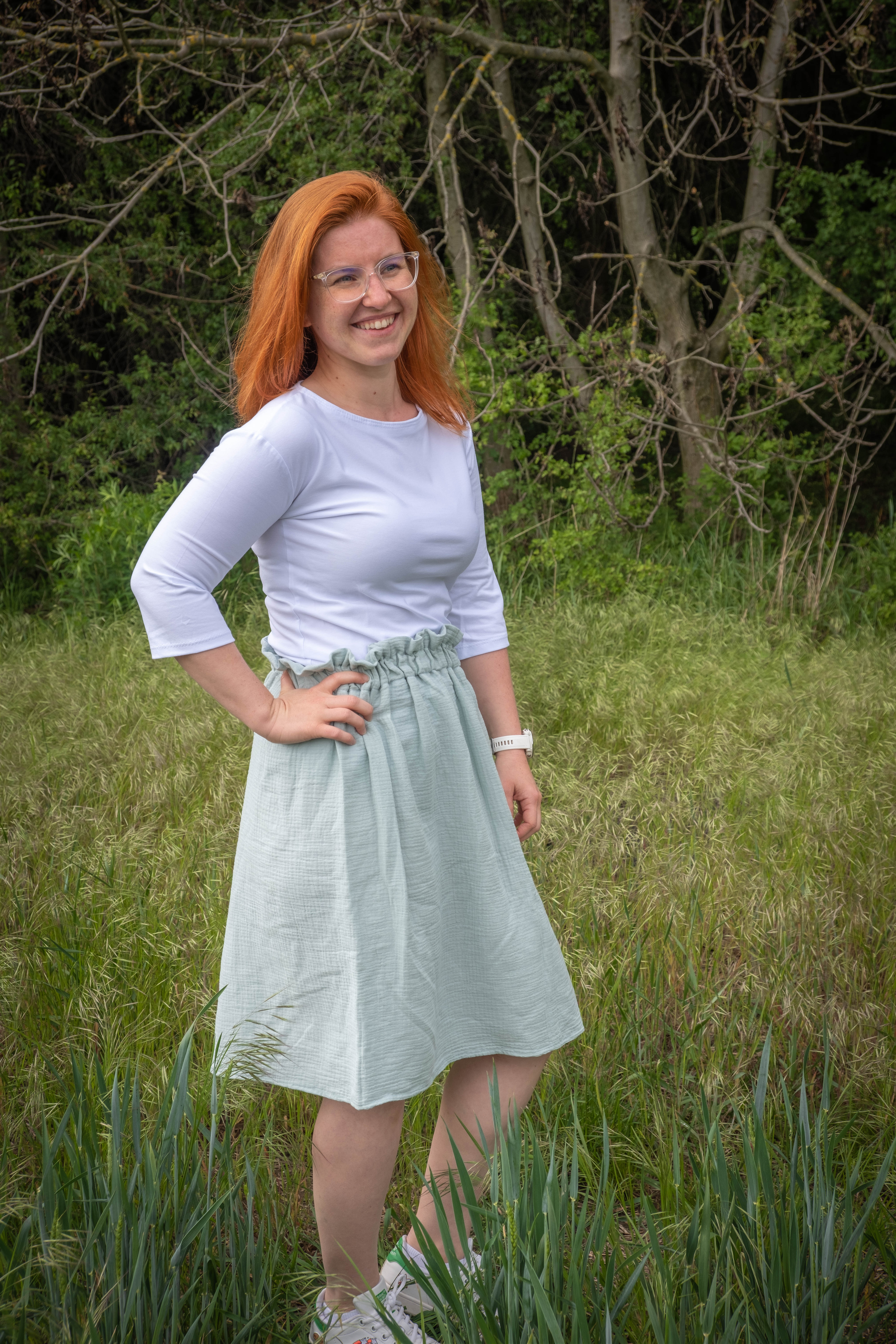 Konce rukávu jsou zakočeny nápletem. (Nejenom díky volnému střihu ale i nápletům je mikinka rostoucí a vydrží několik velikostí).