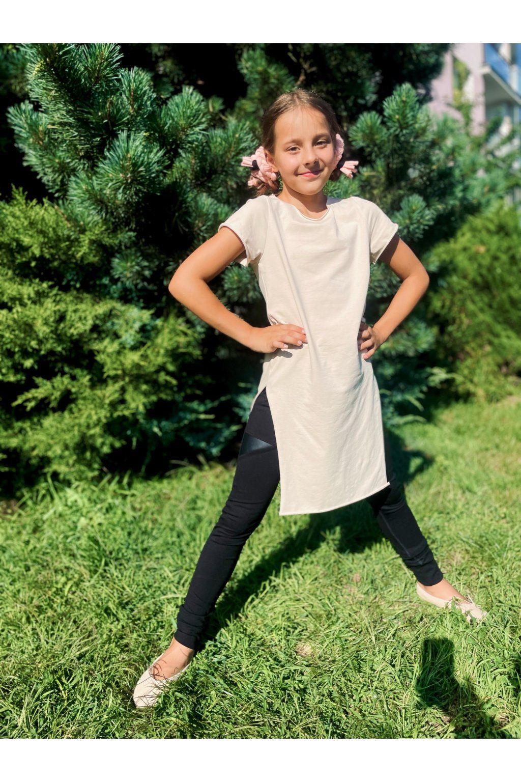 DÍVČÍ Triko s rozparky DEPP BEIGE ( krátký rukáv )