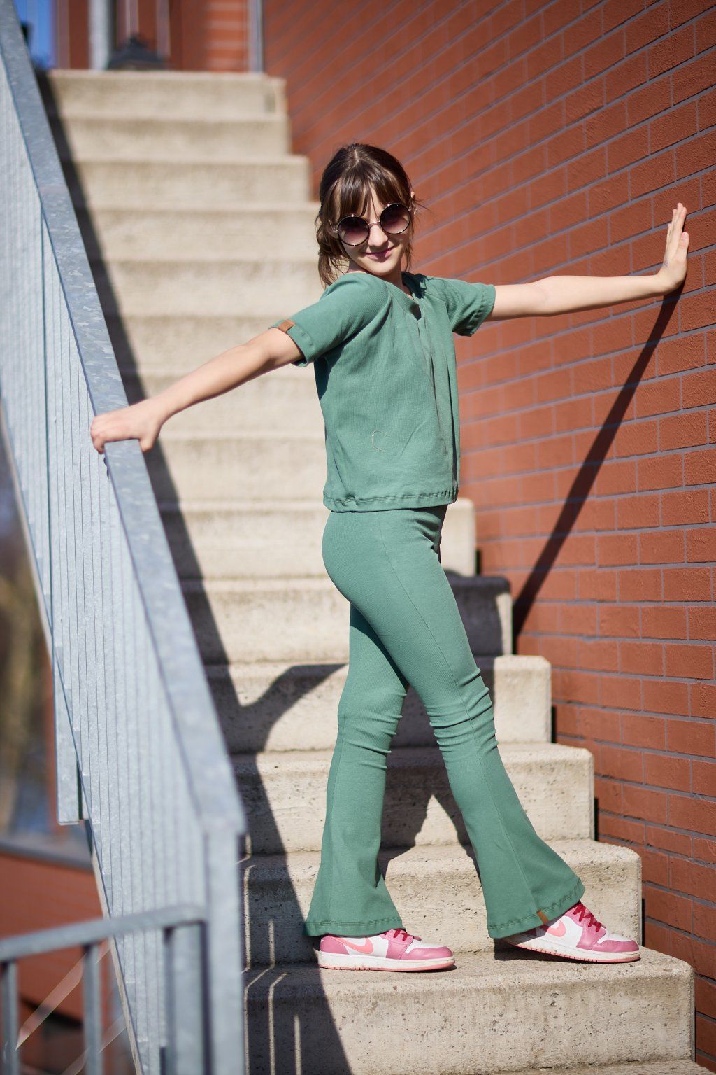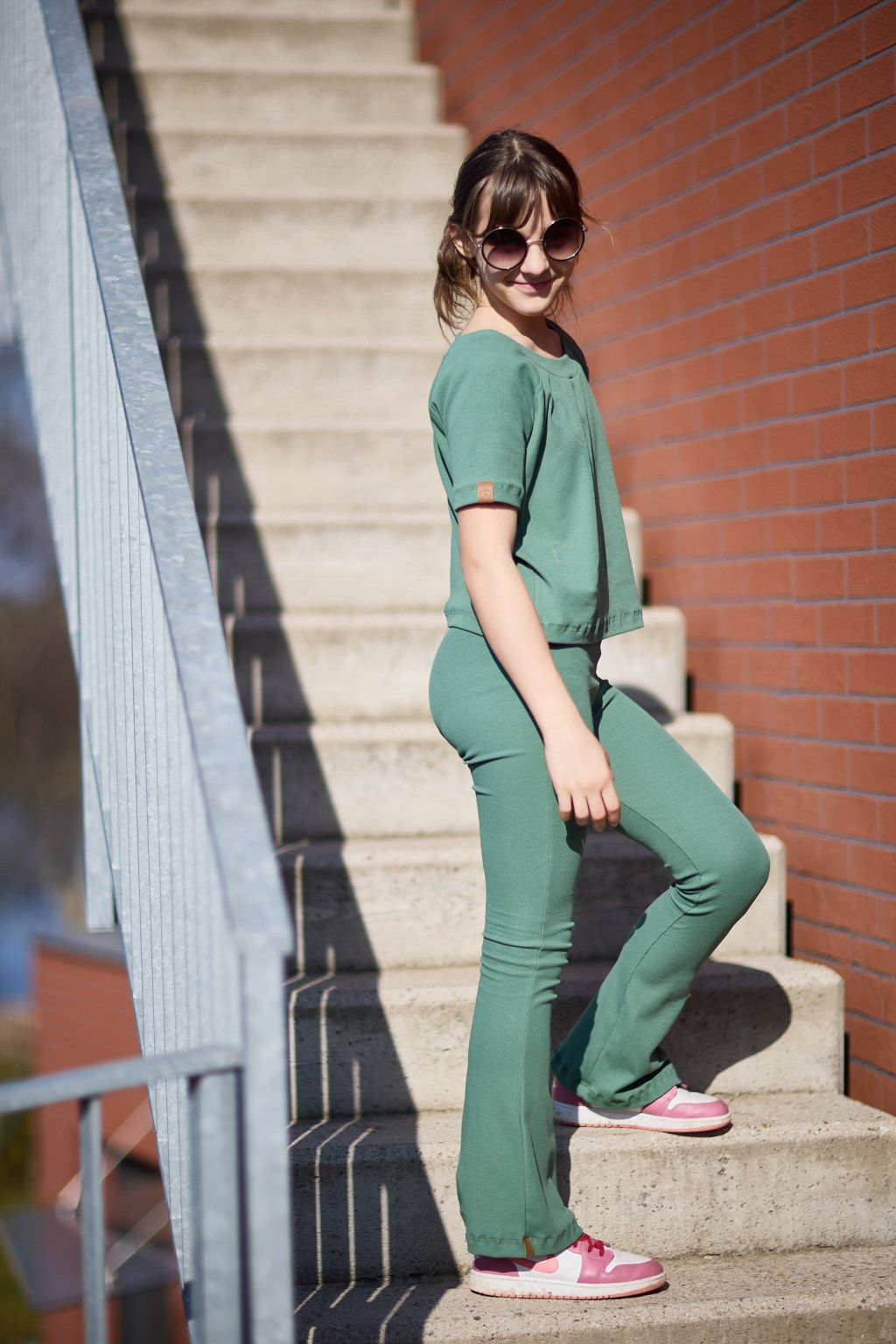 DÍVČÍ Žebrované zvonové kalhoty SATURDAY NIGHT FEVER Green