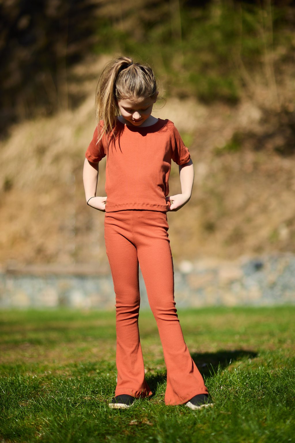 CROP TOP má volnější střih. Modelka na fotografii měří 136 cm a na sobě má velikost 134/140.