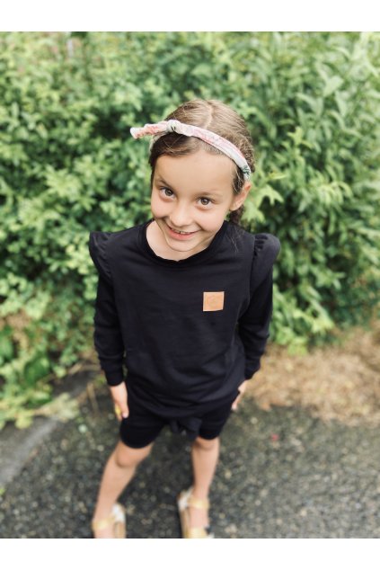 Teploučká zimní mikina má volnější a delší střih. Je ušitá z černého chlupatého fleecu. Spodní lem a rukávy jsou zakončené gumičkou. Mikina má kapuci a vpředu kapsu ze stejného materiálu. Ozdobená je vpředu saténovou stuhou s nápisem JAKOMAMA CZ.