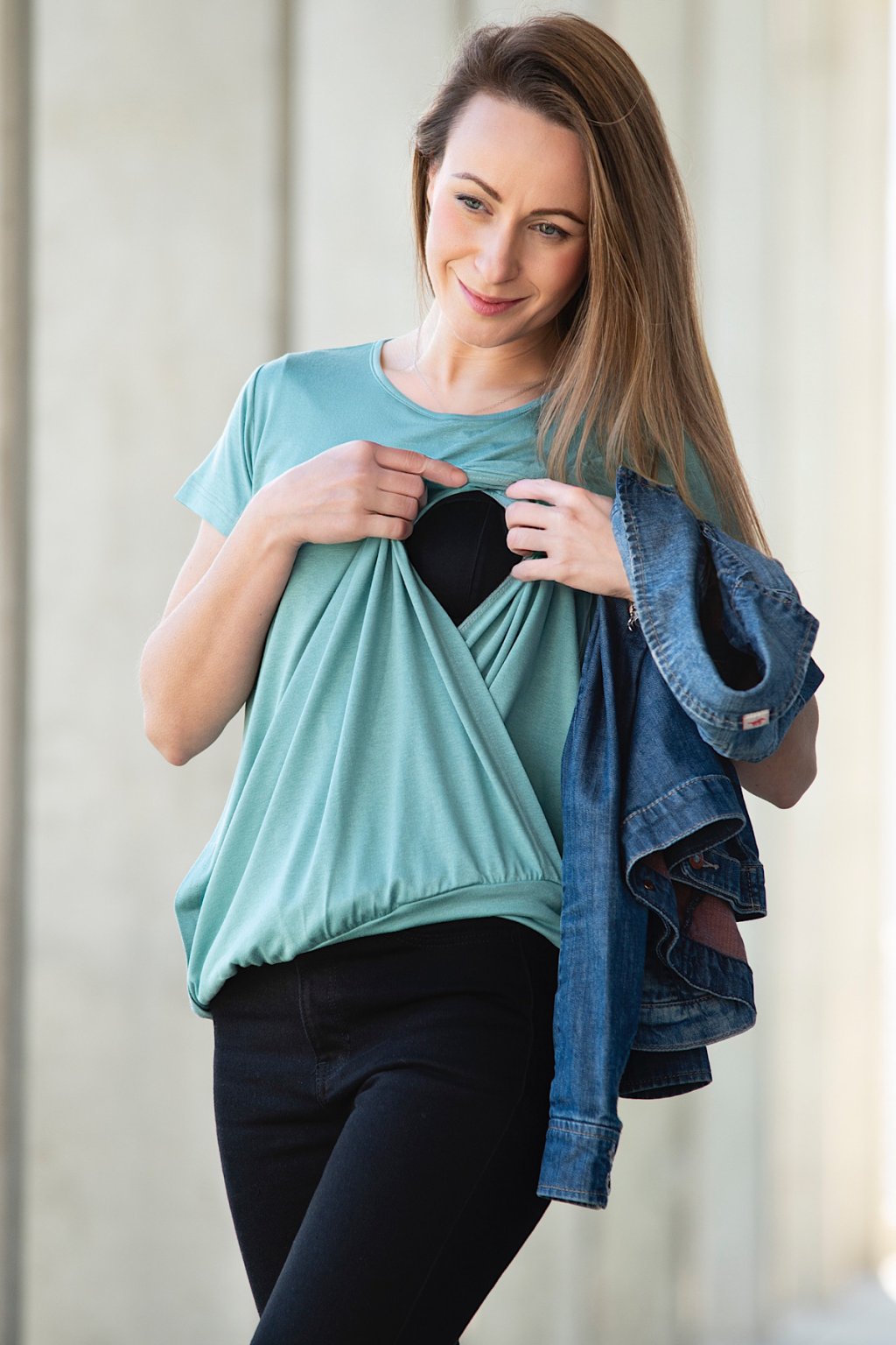 Nadčasová kojicí halenka je navržená pro Váš nejvyšší komfort při kojení miminka - je prodyšná, elegantní, s rychlým a jednoduchým přístupem ke kojicí podprsence. Díky střihu navíc krásně zakryje poporodní bříško.