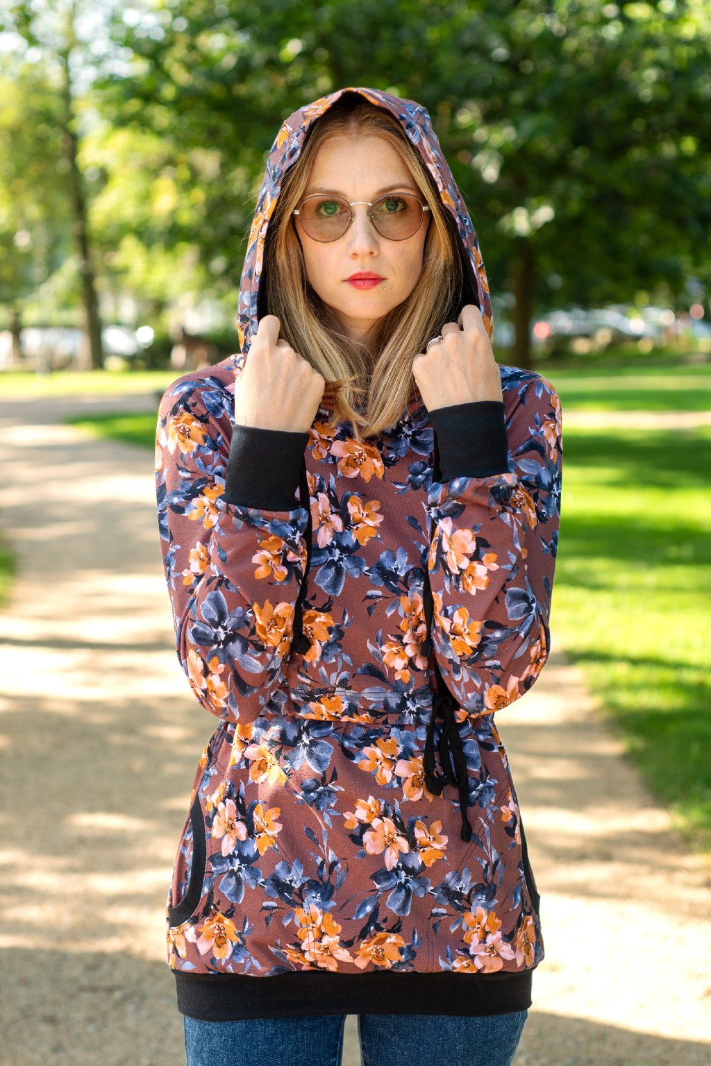 Střih téhle úžasné mikiny vychází z našich mikinových šatů, které si maminky mimořádně oblíbily. Jeho vychytávkou jsou velká kapuce, hluboké kapsy na různé drobnosti a v neposlední řadě oceníte důmyslné tkaničky pod prsy, které mají hned několik předností: