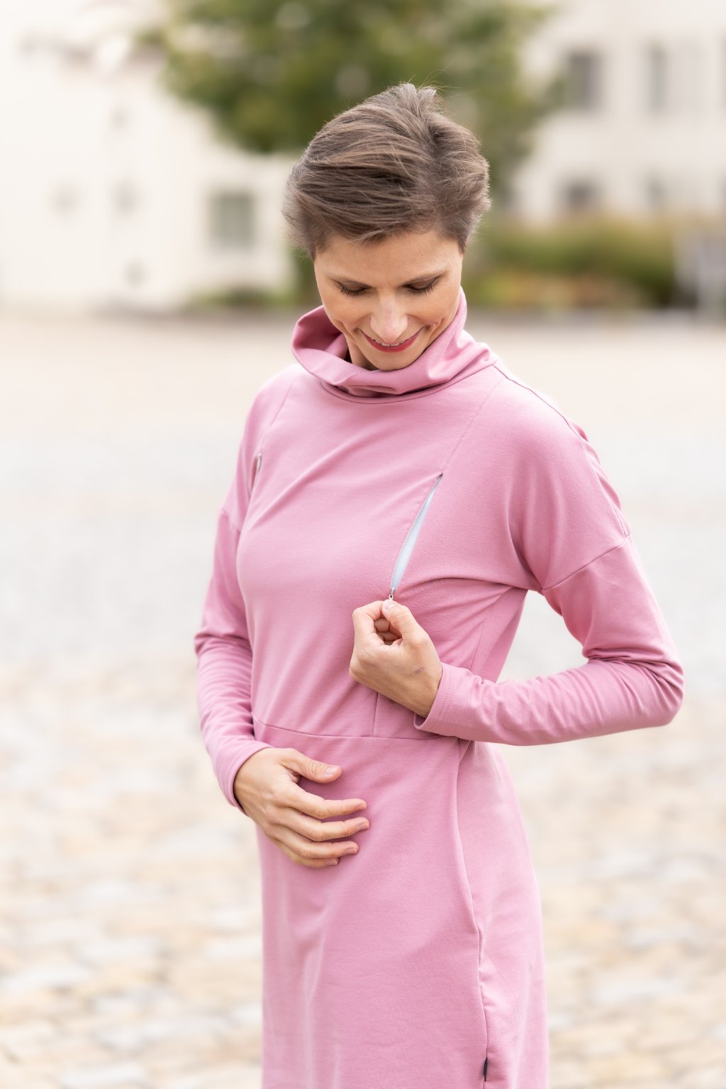 Kojicí šaty Pallas mají v přední části skryté zipy, díky kterým nakojíte své miminko nenápadně a pohodlně opravdu kdekoliv. Díky tomu, že zipy vedou přes prsa, je přístup k nim opravdu rychlý. Zip se otevírá dolů, je tedy možné ho otevřít i jednou rukou.