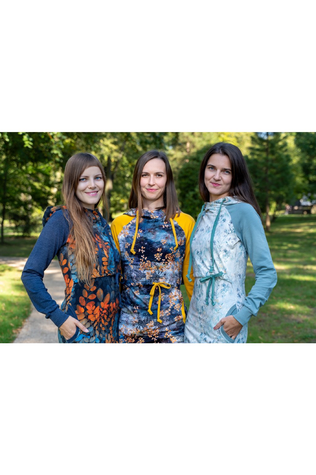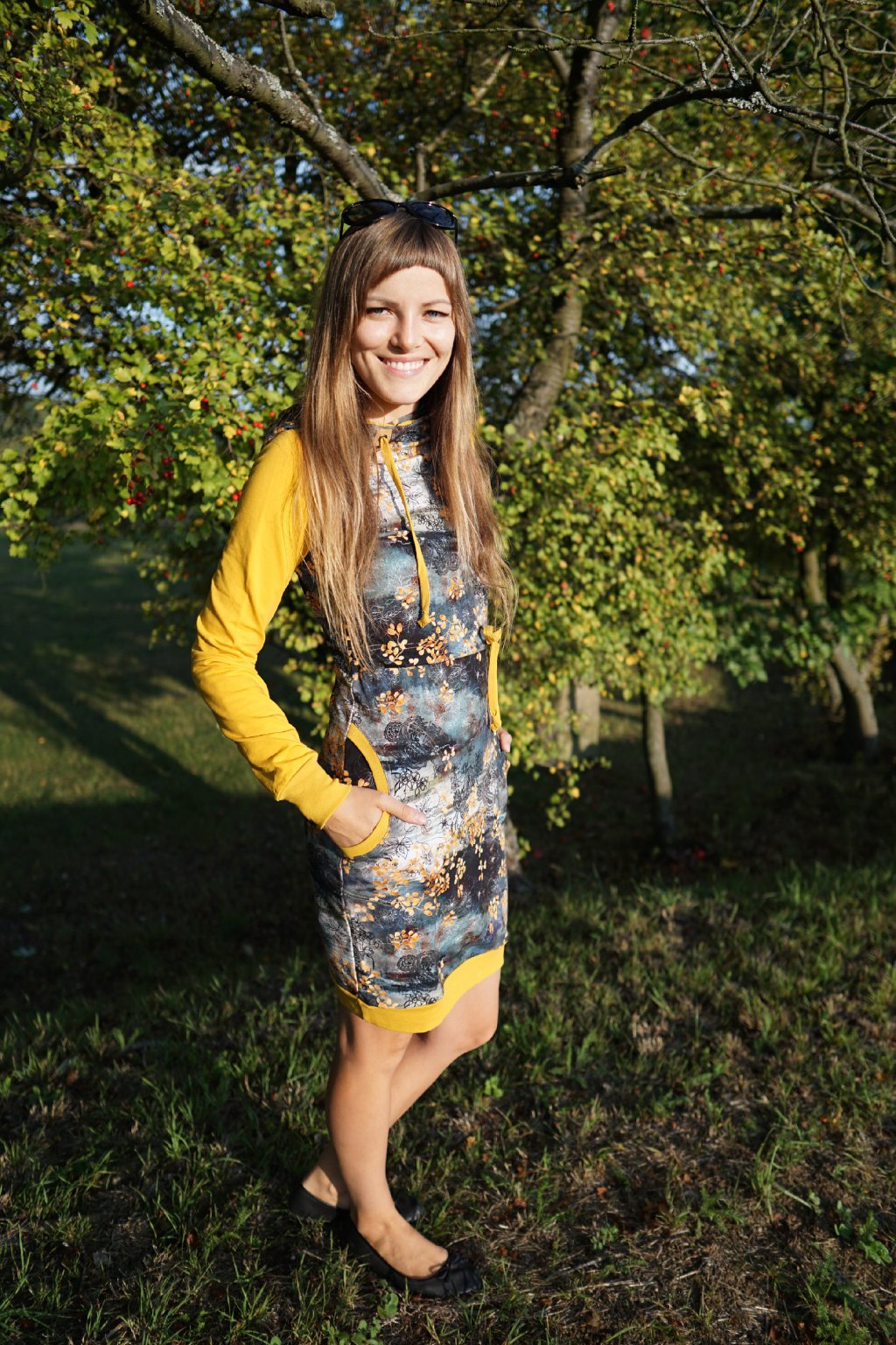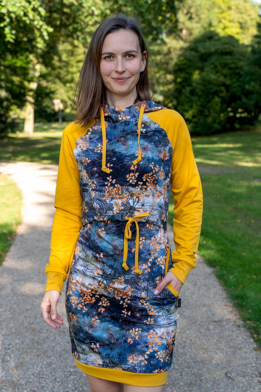Mikinové šaty jsou do detailu promyšleny a sladěny do jednotného stylu. Mají velkou kapuci, kapsy a za povšimnutí stojí také barevné náplety či tkanice, které jsou sladěny k celkovému designu šatů. Tyto volnočasové šaty se hodí k teniskám i na sportovní aktivity, ale perfektně ladí také s balerínami a kabelkou.