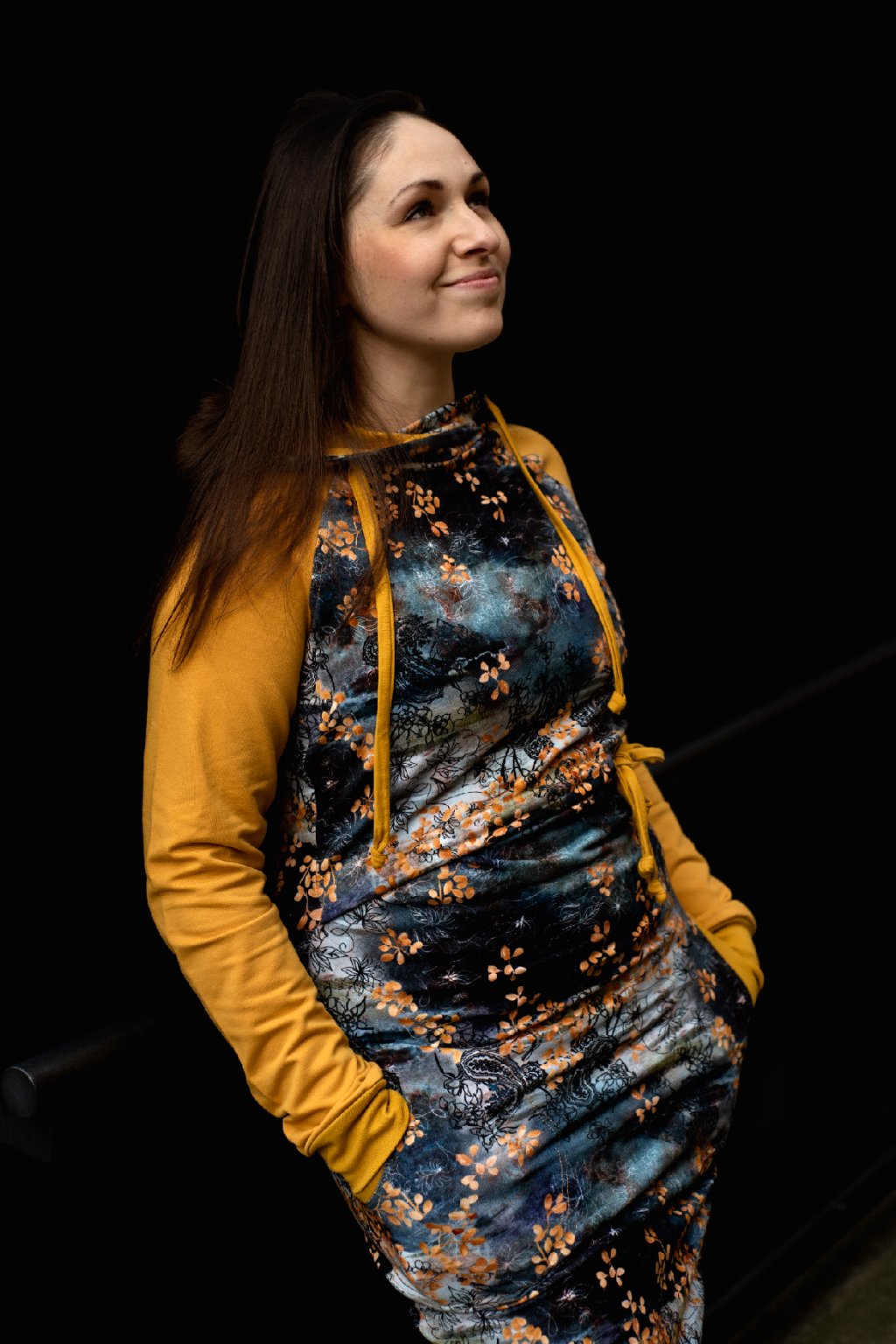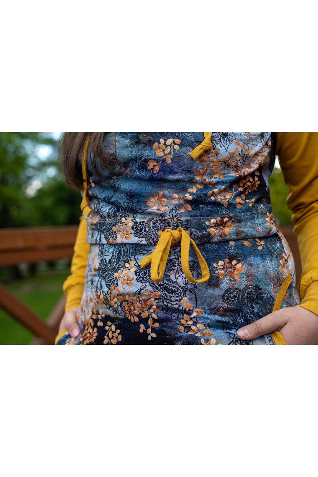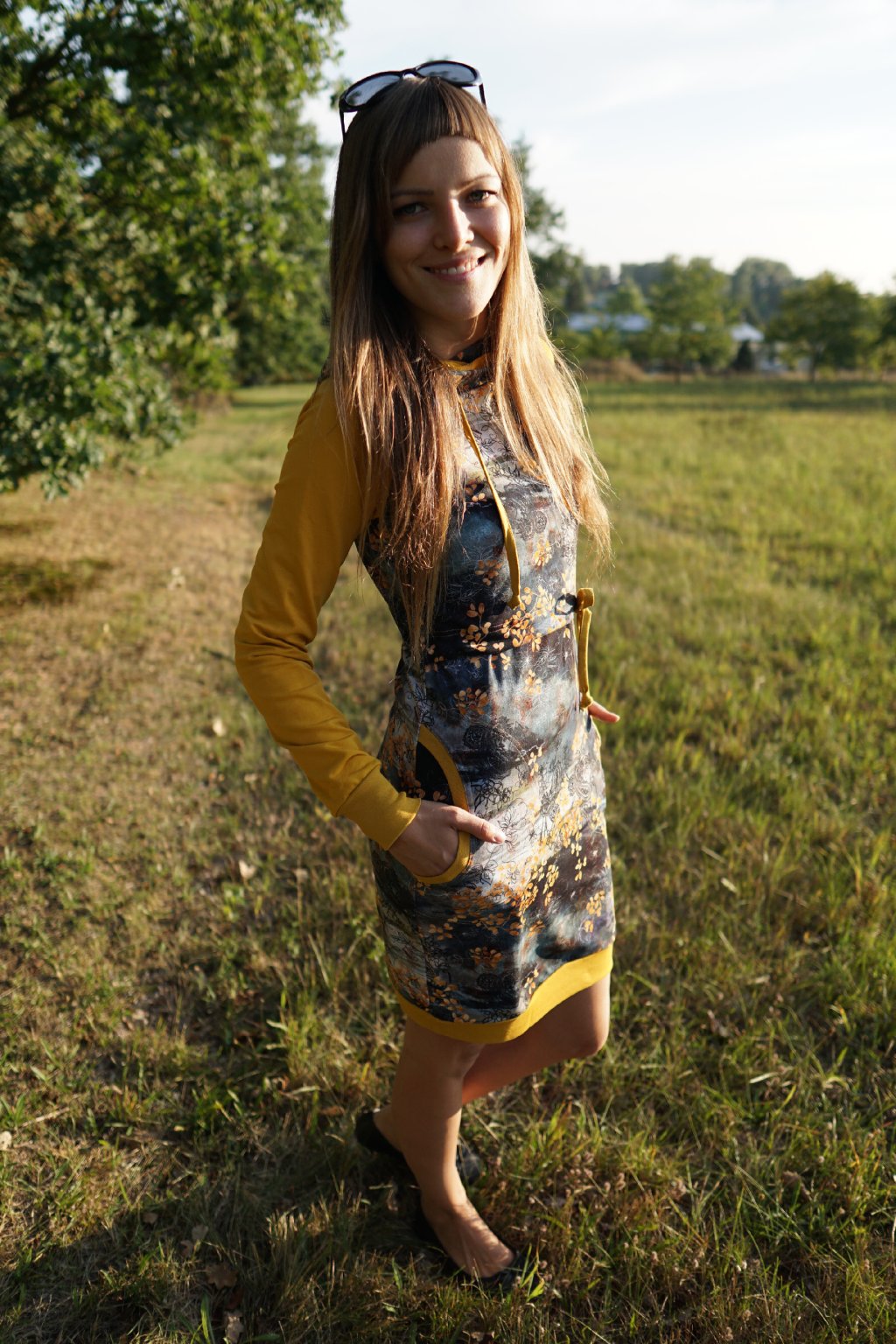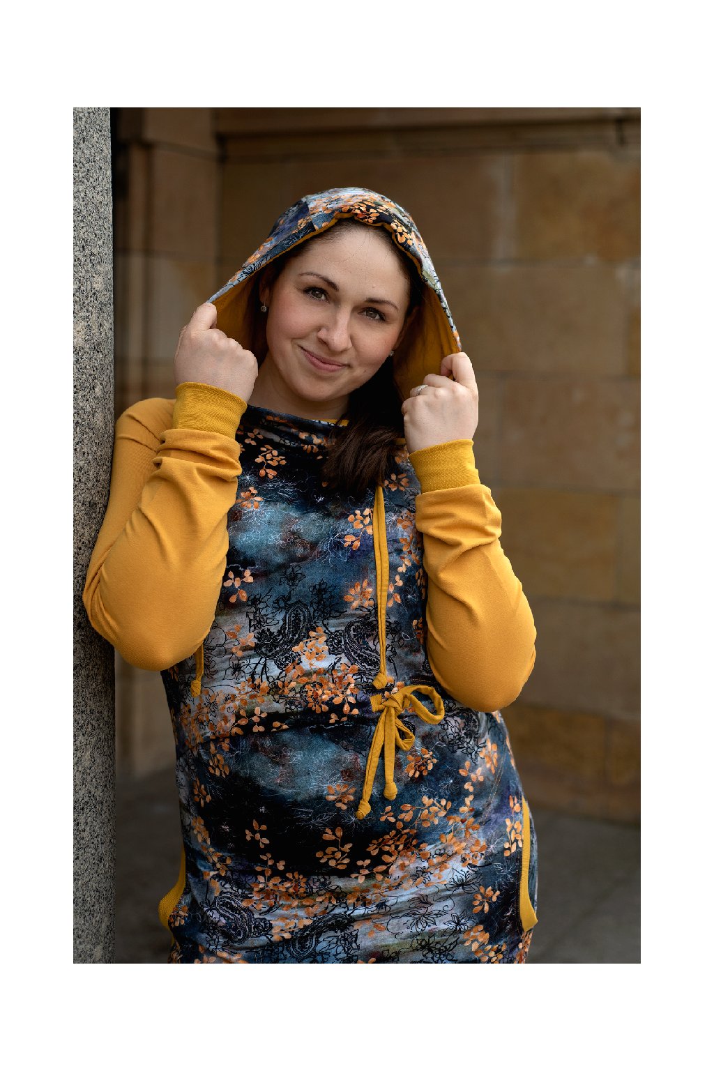 Mikinové šaty jsou do detailu promyšleny a sladěny do jednotného stylu. Mají velkou kapuci, kapsy a za povšimnutí stojí také barevné náplety či tkanice, které jsou sladěny k celkovému designu šatů. Tyto volnočasové šaty se hodí k teniskám i na sportovní aktivity, ale perfektně ladí také s balerínami a kabelkou.