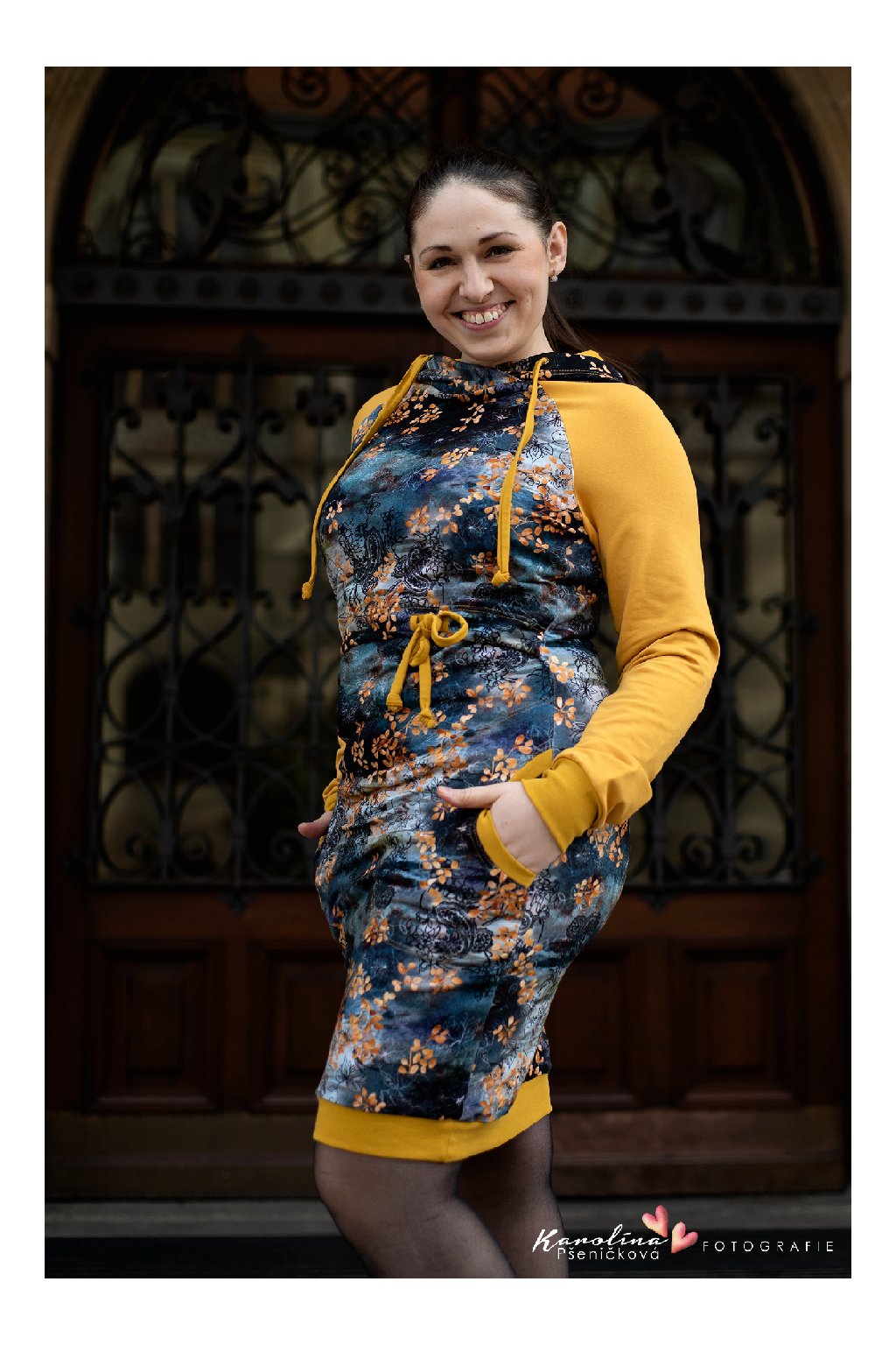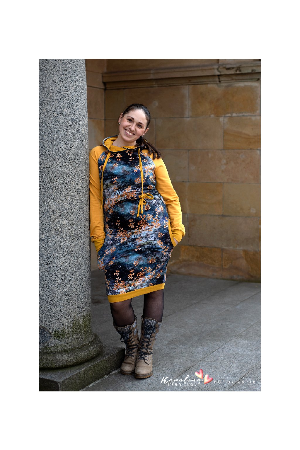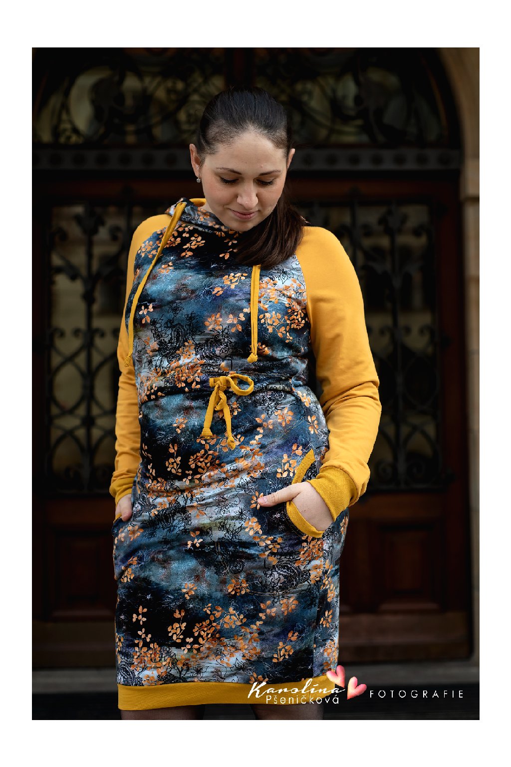 Kojicí mikinové šaty Jsem máma, okrové II.jakost