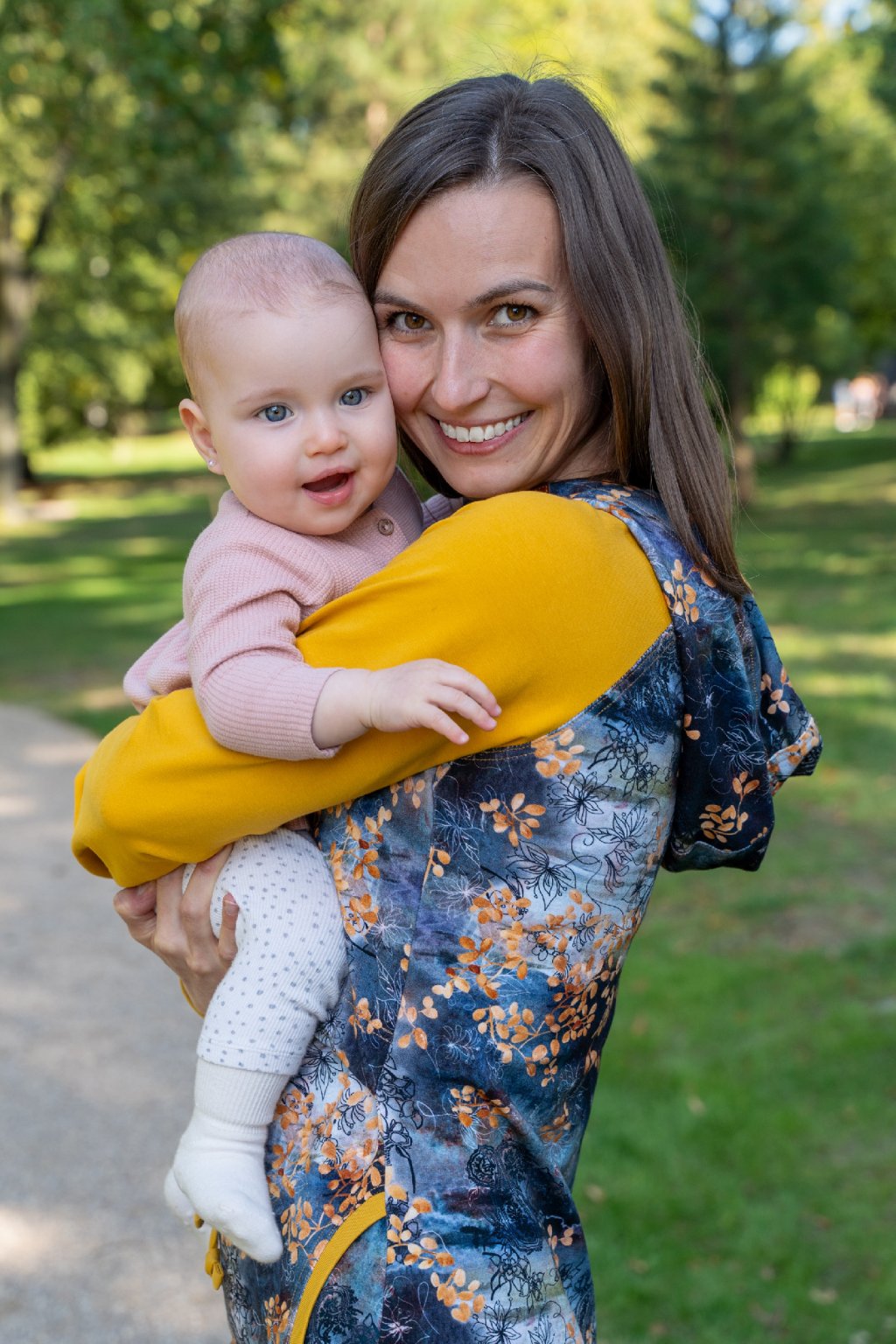 Nosíte ráda šaty, ale v zimě byste si na to netroufla? S našimi mikinovými šaty Jsem máma se chladného počasí nemusíte obávat. Stačí pořídit punčochy či termolegíny a pohodlný teplý outfit je na světě. Šaty jsou ušity z vysokogramážní bavlněné teplákoviny, která je velmi příjemná, měkká a podléhá certifikaci Öko-Tex Standard 100. Komfort při nošení šatů zaručuje také jejich volnější střih, který neobepíná bříško, nerýsuje případné nedostatky a počítá také s možnou vrstvou oblečení pod šaty.