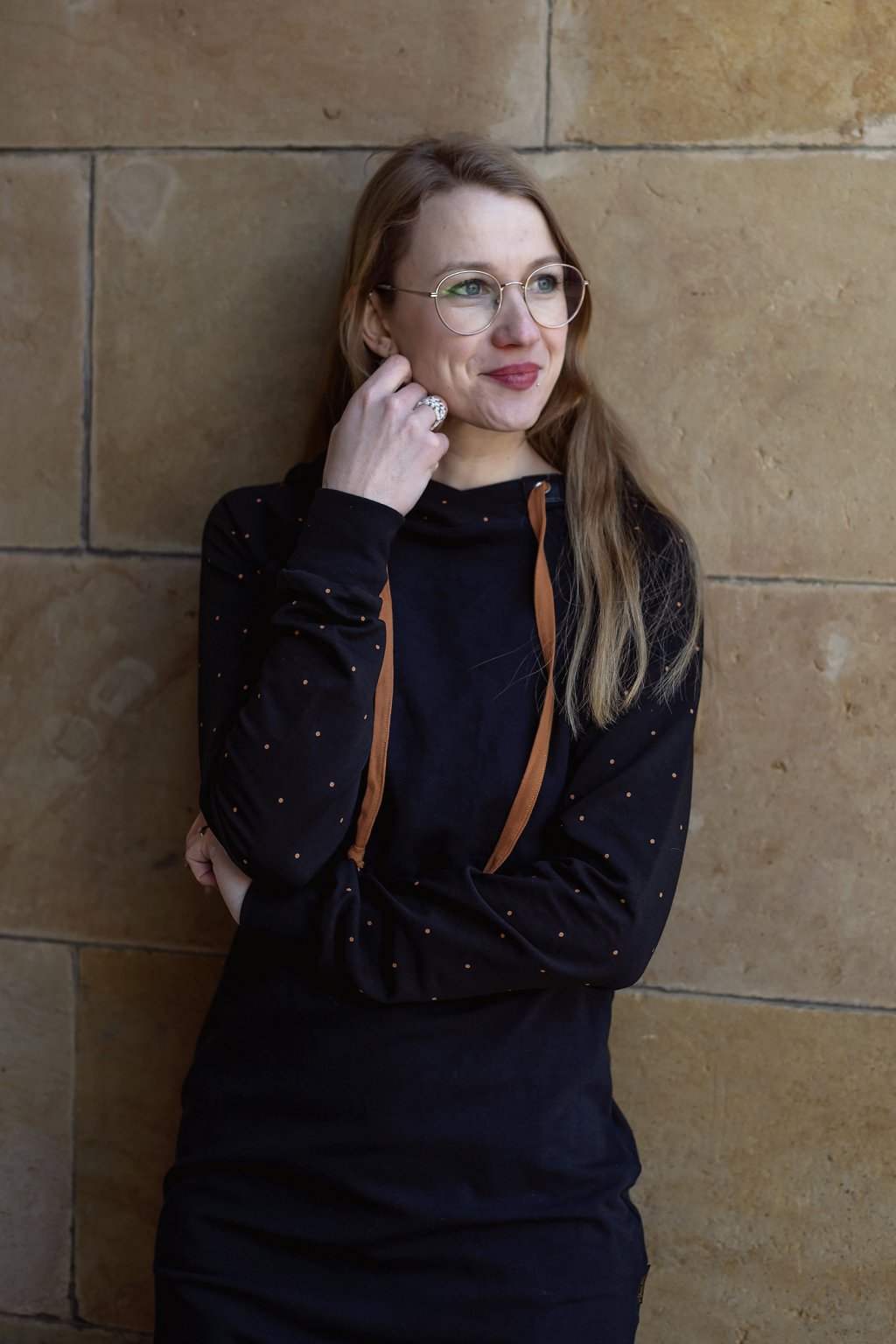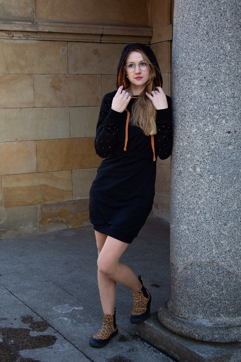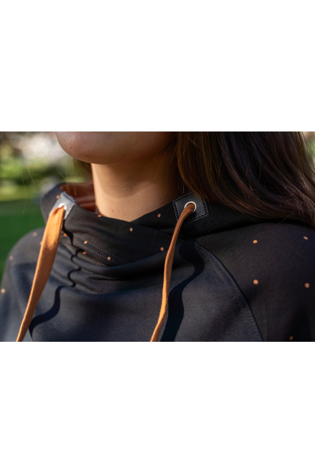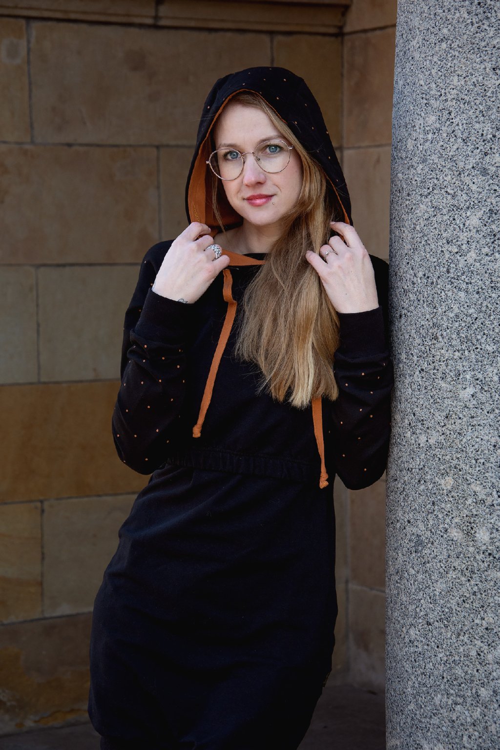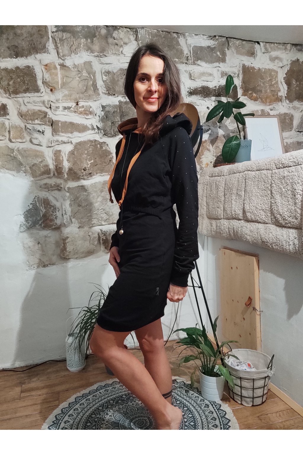 Mikinové šaty jsou do detailu promyšleny a sladěny do jednotného stylu. Mají velkou kapuci, která je ve stejném barevném provedení jako puntíky rukávů. Tyto volnočasové šaty se hodí k teniskám i na sportovní aktivity, ale perfektně ladí také s balerínami a kabelkou.