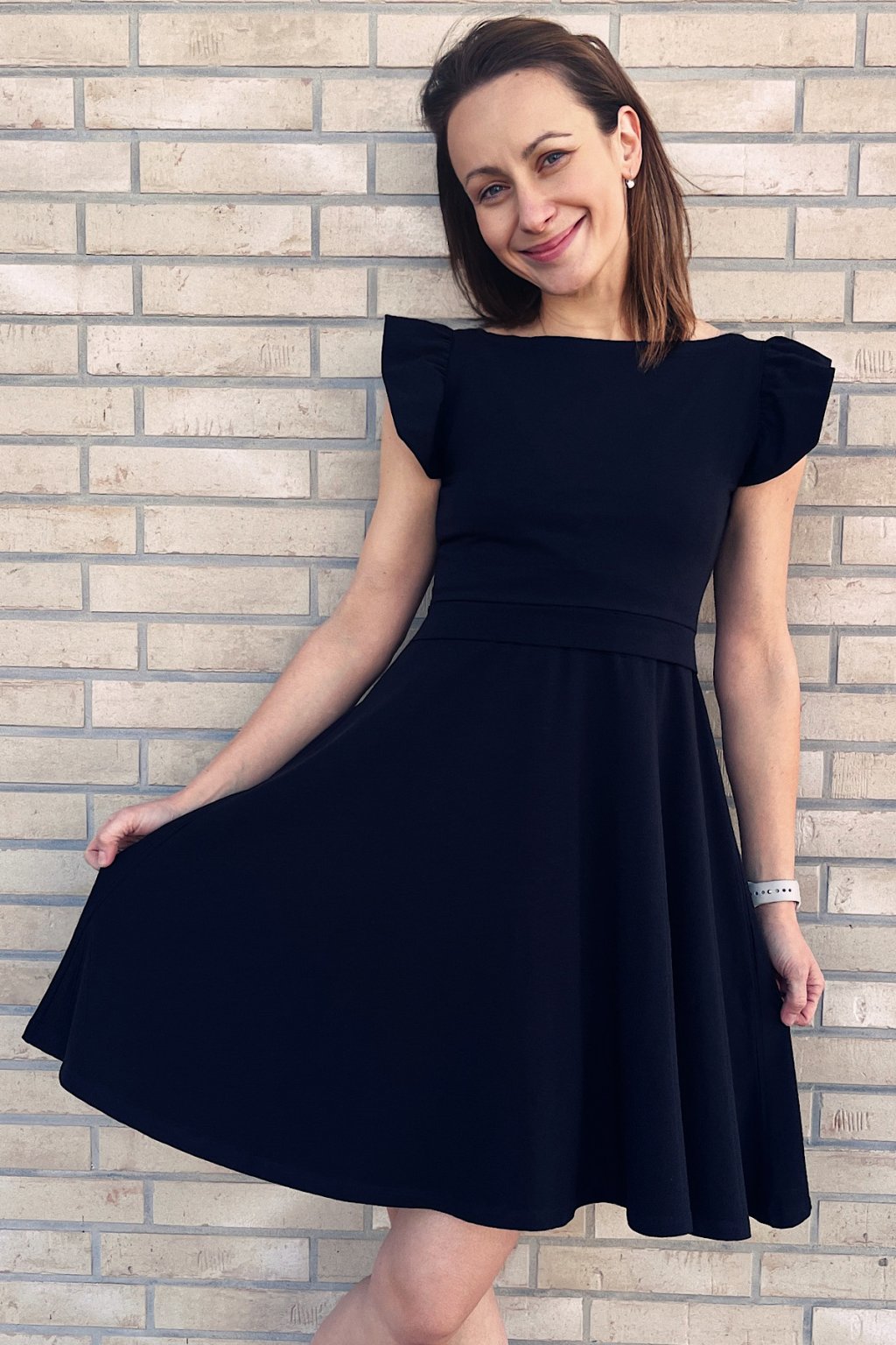Kojicí šaty Amalie BIO bavlna + modal black volánek