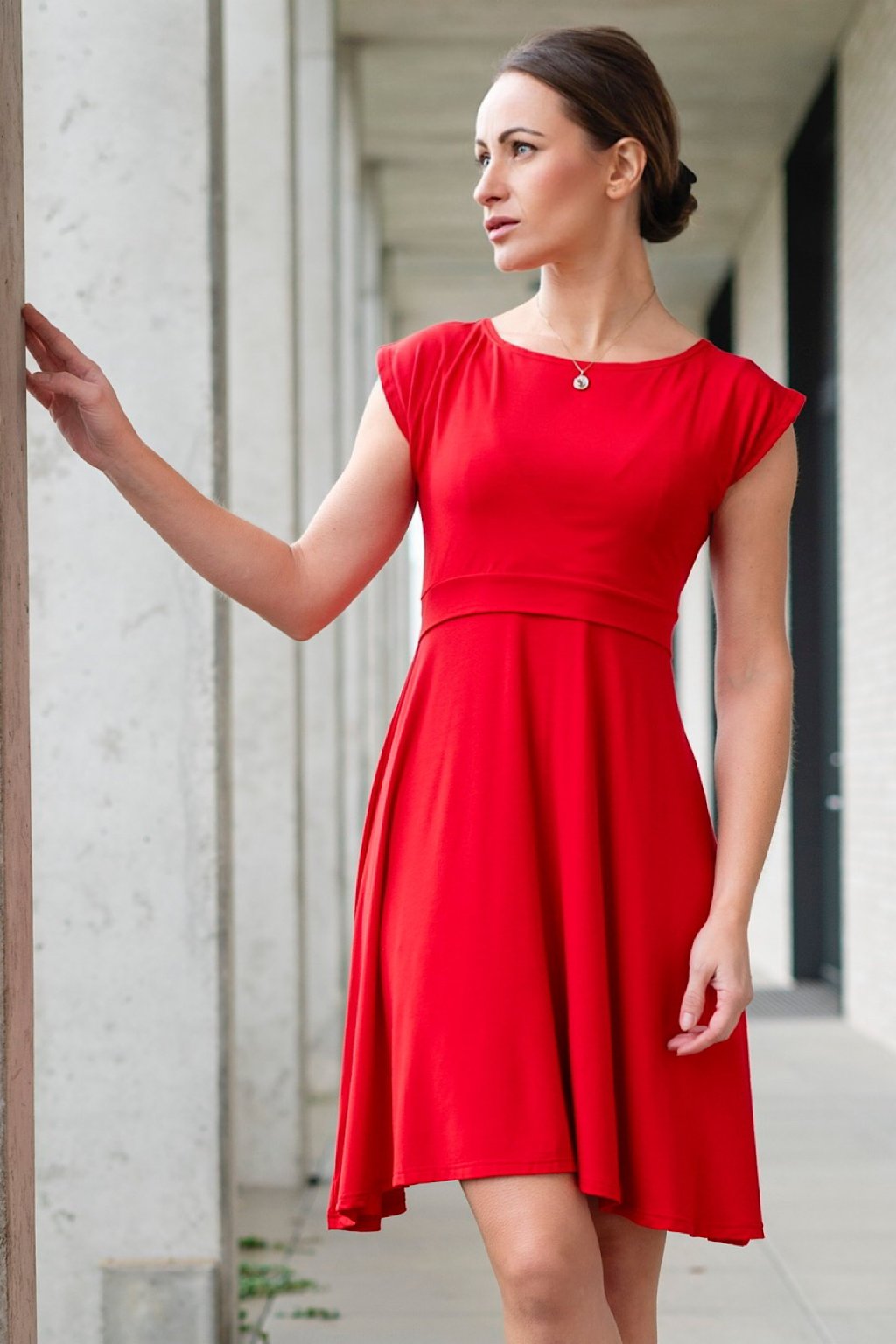 Modalové šaty se širokou sukní a s KIMONO rukávem skvěle zakryjí poporodní bříško i boky a naopak vyzdvihnou ty hezké křivky.