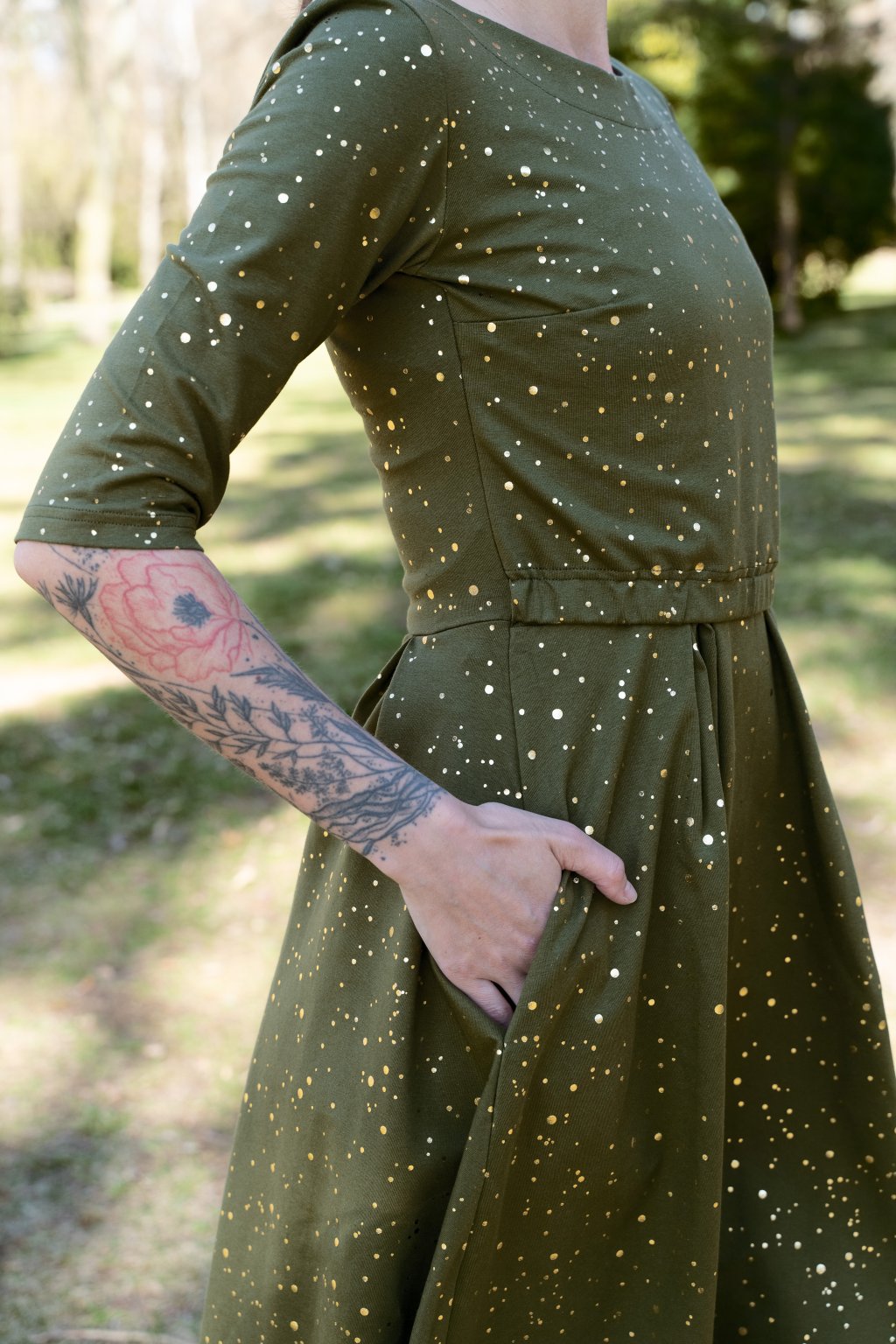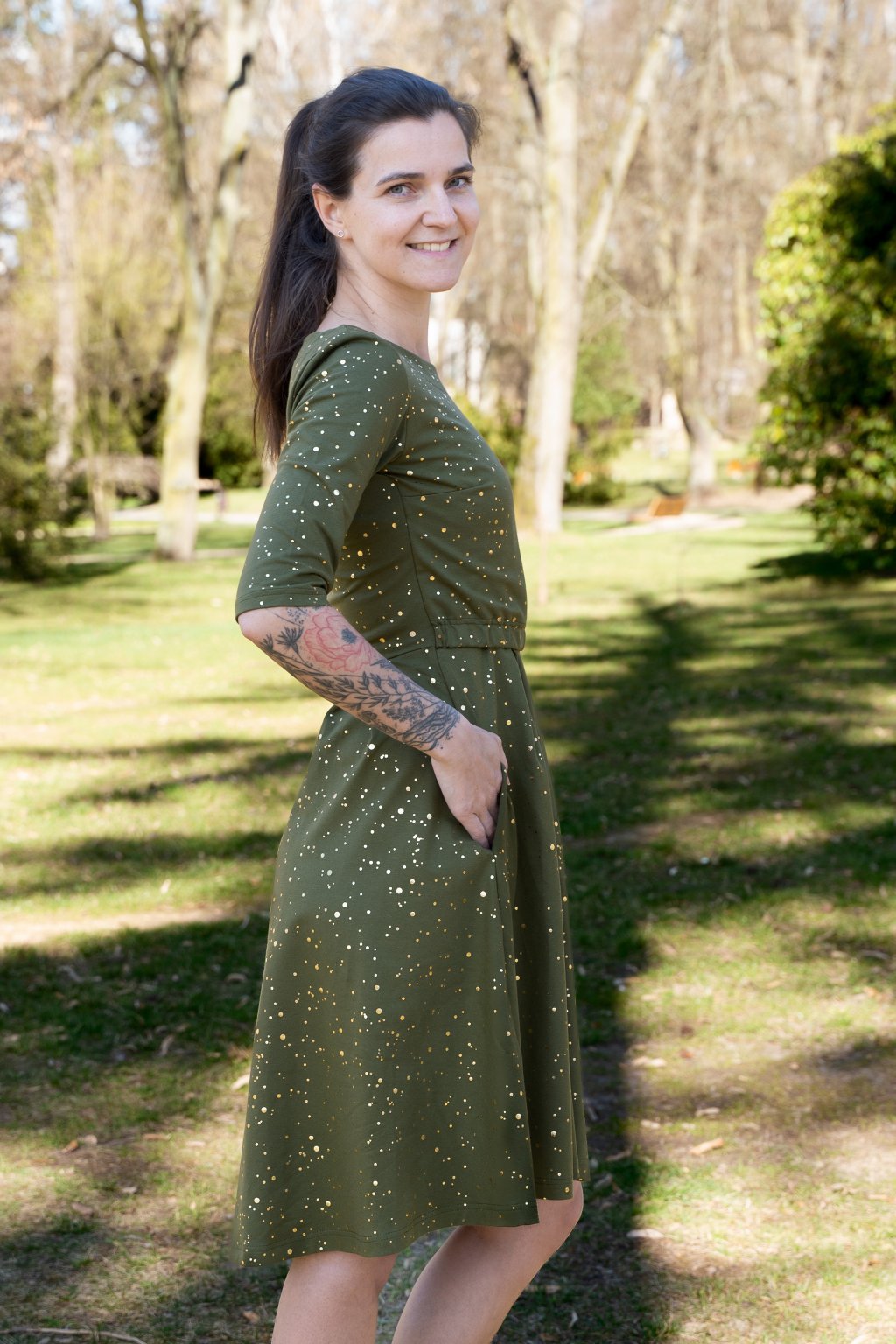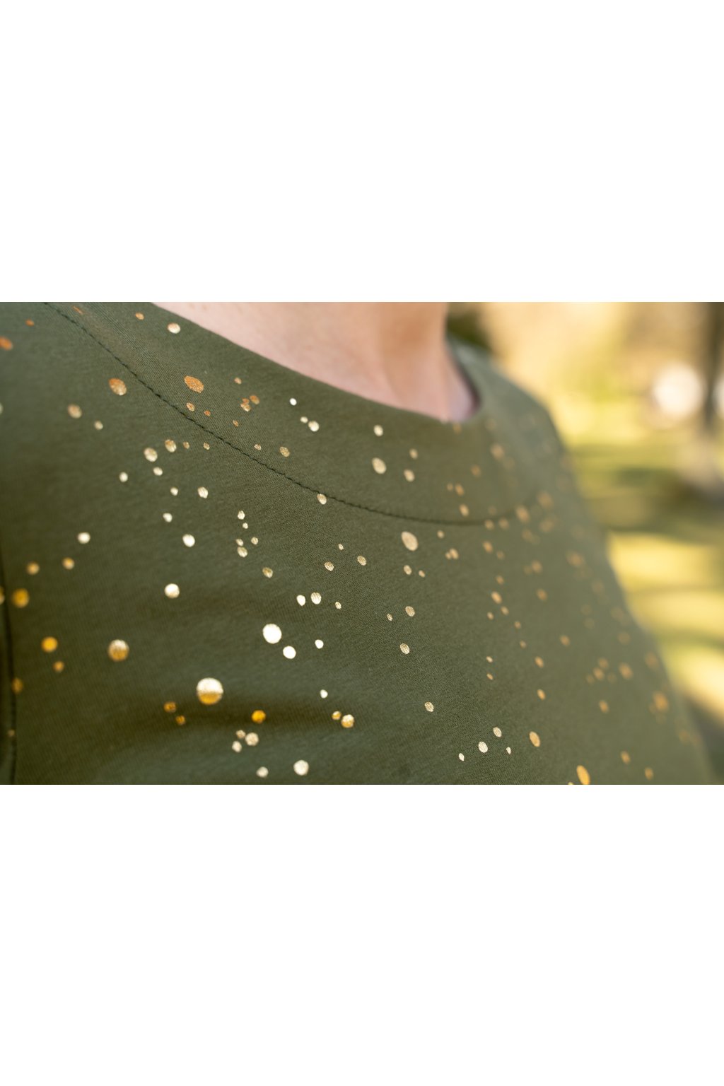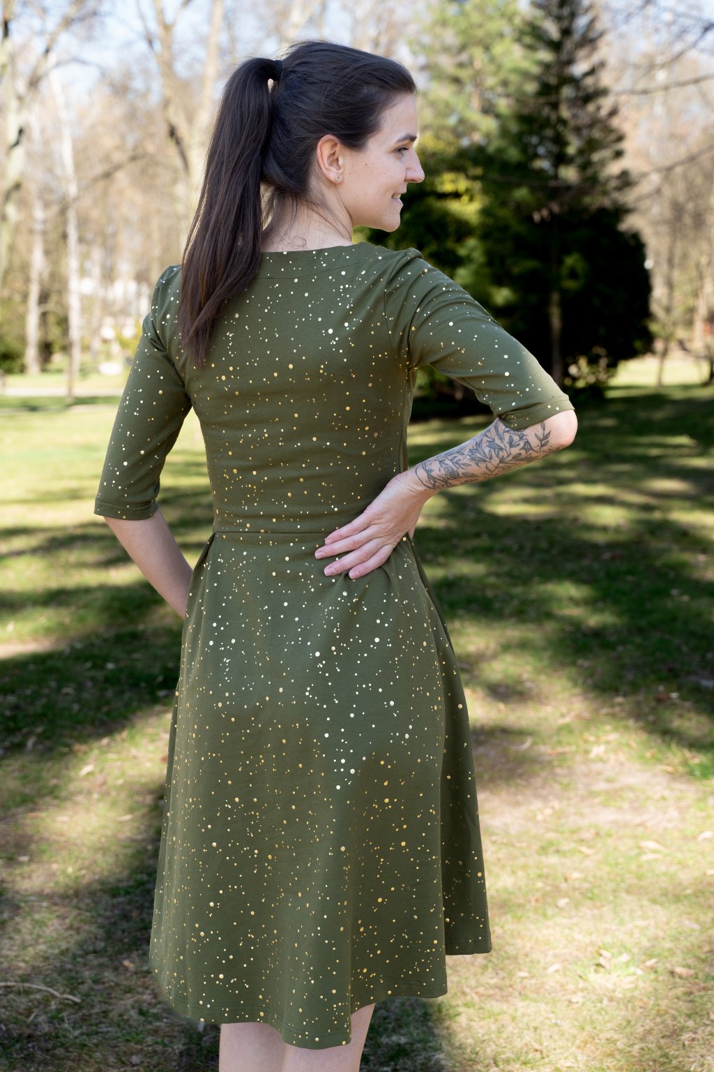 Khaki barva v sobě ukrývá stabilitu a zakořenění. Působí nenápadně, ale silně. A právě na jejím pozadí vyniknou drobné zlaté kapky – jako hvězdy, které se nebojí zazářit ani v tom nejhlubším tichu. Tato kombinace je jako stvořená pro ženu, která ví, kým je. Nemusí na sebe upozorňovat. Přesto v ní něco září. Vnitřní jiskra, která se nevnucuje, ale nelze ji přehlédnout. Pořiďte si šaty, které podtrhnou vaši ženskou sílu!