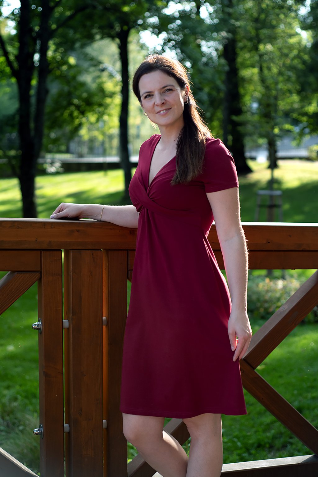Kojicí šaty s uzlem, bio bavlna, bordó