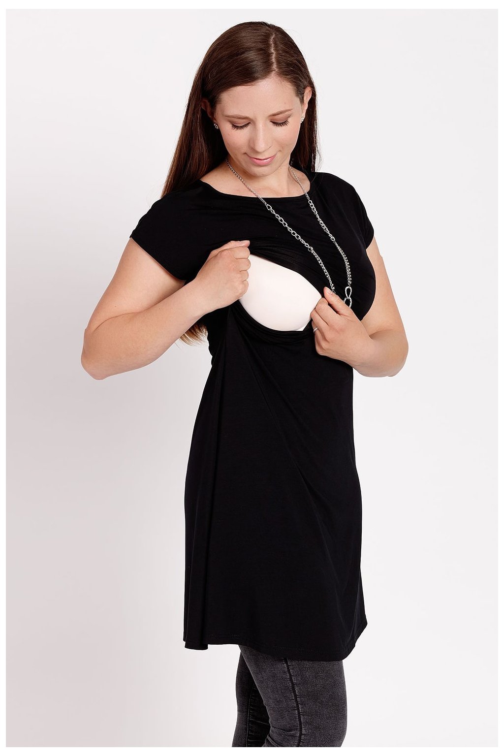 1) Namáhaný spodní díl jsme propracovali do posledního detailu, slouží prakticky jako integrovaná podprsenka a je kvalitně olemovaný paspulkou, vydrží tak obrovskou zátěž. Praktické využití tohoto překládaného výstřihu oproti běžně používanému zakončení gumou oceníte až v praxi ;) Odhalujete vždy jen to malé místečko, které miminko pro kojení potřebuje.