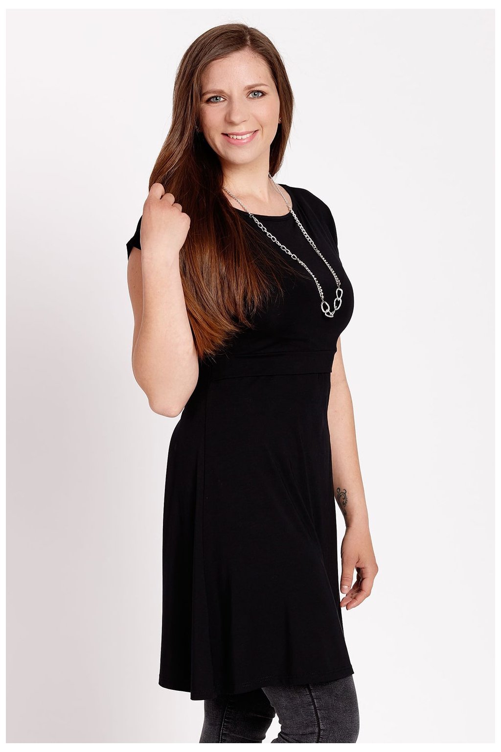 2) Vrchní část pod prsy je zakončena ŠIROKÝM 3CM LEMEM. Ten je nejen praktický pro snadný přístup ke kojení, ale právě díky své šíři krásně vrátí top na obvod hrudníku. Šaty nebo trička Krásná mamka tak dělají skvělou postavu i s poporodním bříškem.