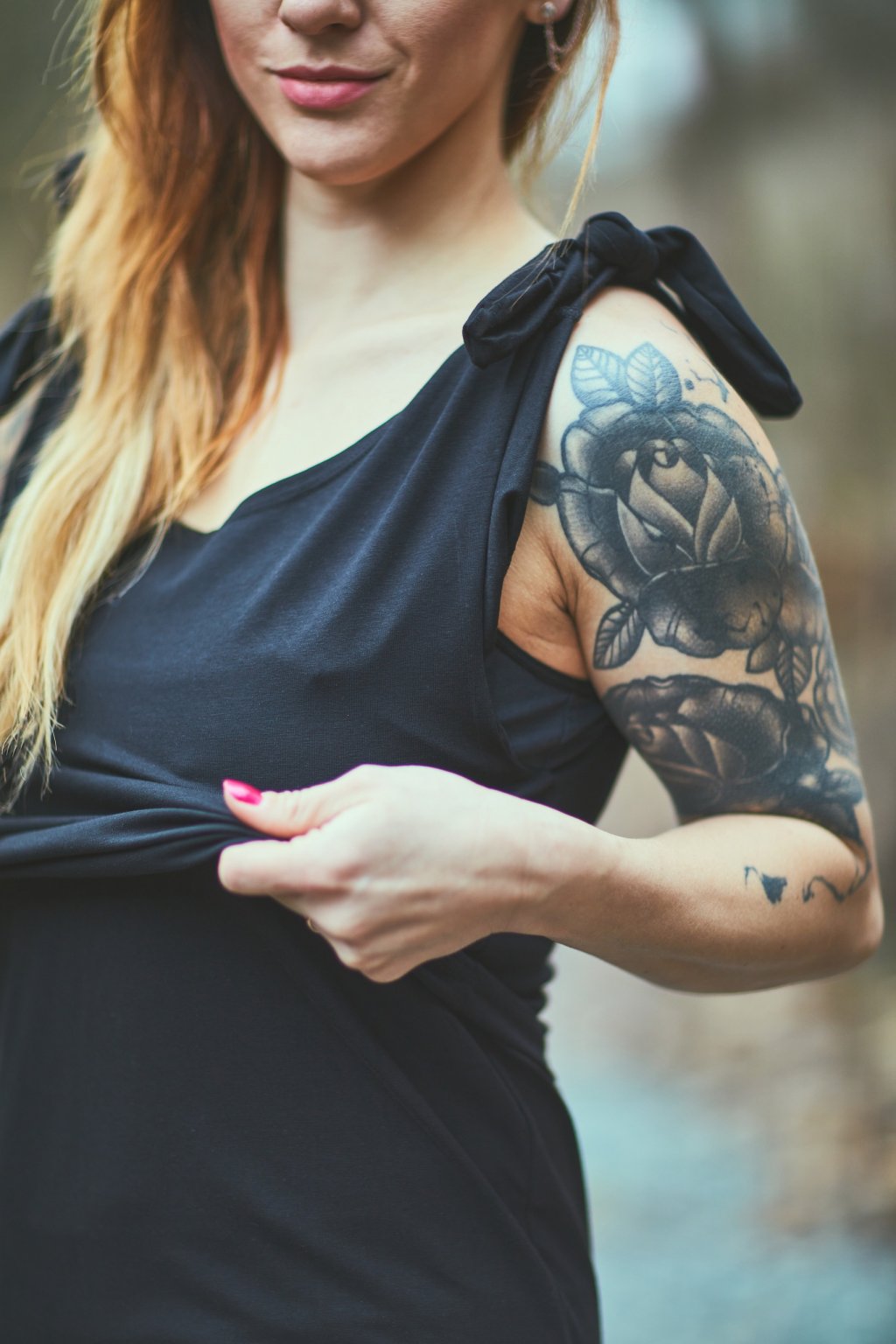 Kojící tílko s mašlemi BLACK - Maminka