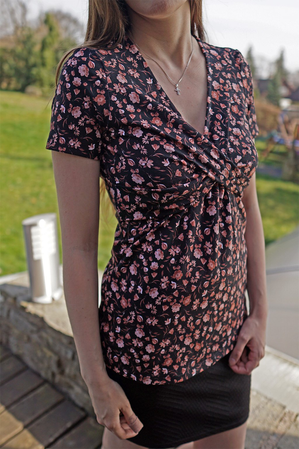 Tato BIO trička na kojení mají zeštíhlující střih, který ocení každá maminka. Horní díl příjemně obepíná prsa a zdůrazňuje ženské přednosti. Zavinovací výstřih s ozdobným uzlem je moderní a lichotivý, perfektně padne a sluší i ženám s menšími ňadry. Spodní díl trička je naopak volného střihu a to díky lehkému řasení pod prsy, které schová vaše těhotenské či poporodní bříško. Tričko se tak hodí pro ženy, které preferují volnější střih a nemají rády upnuté oblečení.