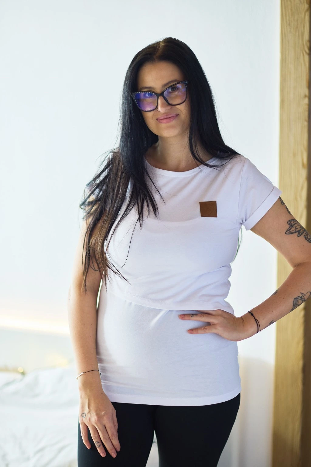 Kojící tričko WHITE (krátký rukáv/s nášivkou) - Maminka