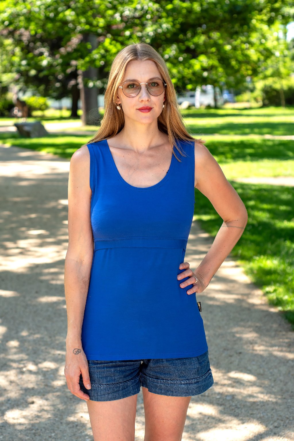 Tílko má projmutý střih a nenajdete u něj boční řasení pro těhotenské bříško, které útlým pasům plandá a špatně sedí. Přesto díky své pružnosti a délce dokáže těhotenskému či poporodnímu bříšku poskytnout dostatek pohodlí. Tílko řadíme do skupiny MUST HAVE!